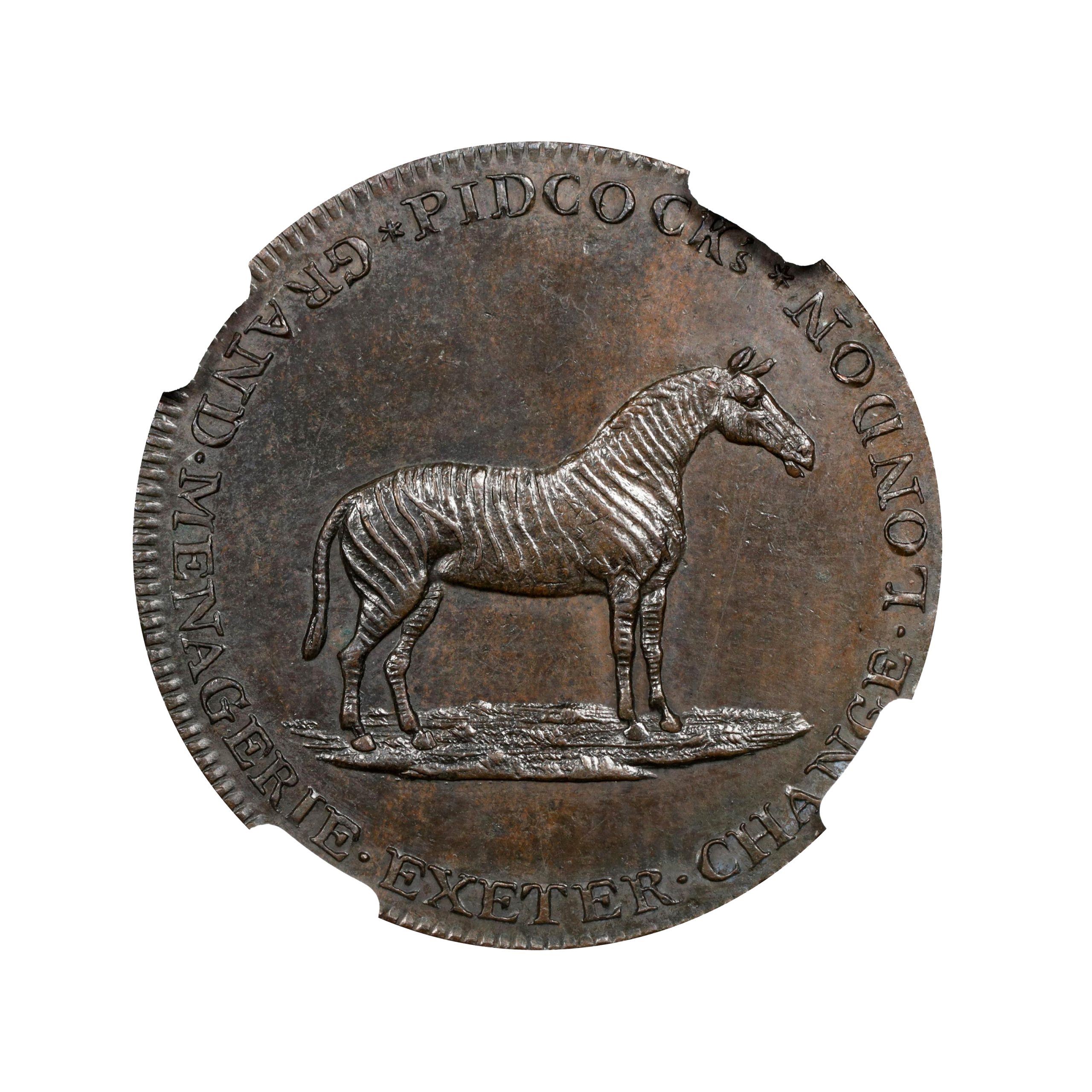 Middlesex, The Strand, Gilbert Pidcock; D&H 451, halfpenny struck in copper. Another Zebra, perhaps marginally sharper than previous. Even brown patina, extremely fine or better and currently housed in an NGC 63BN holder..