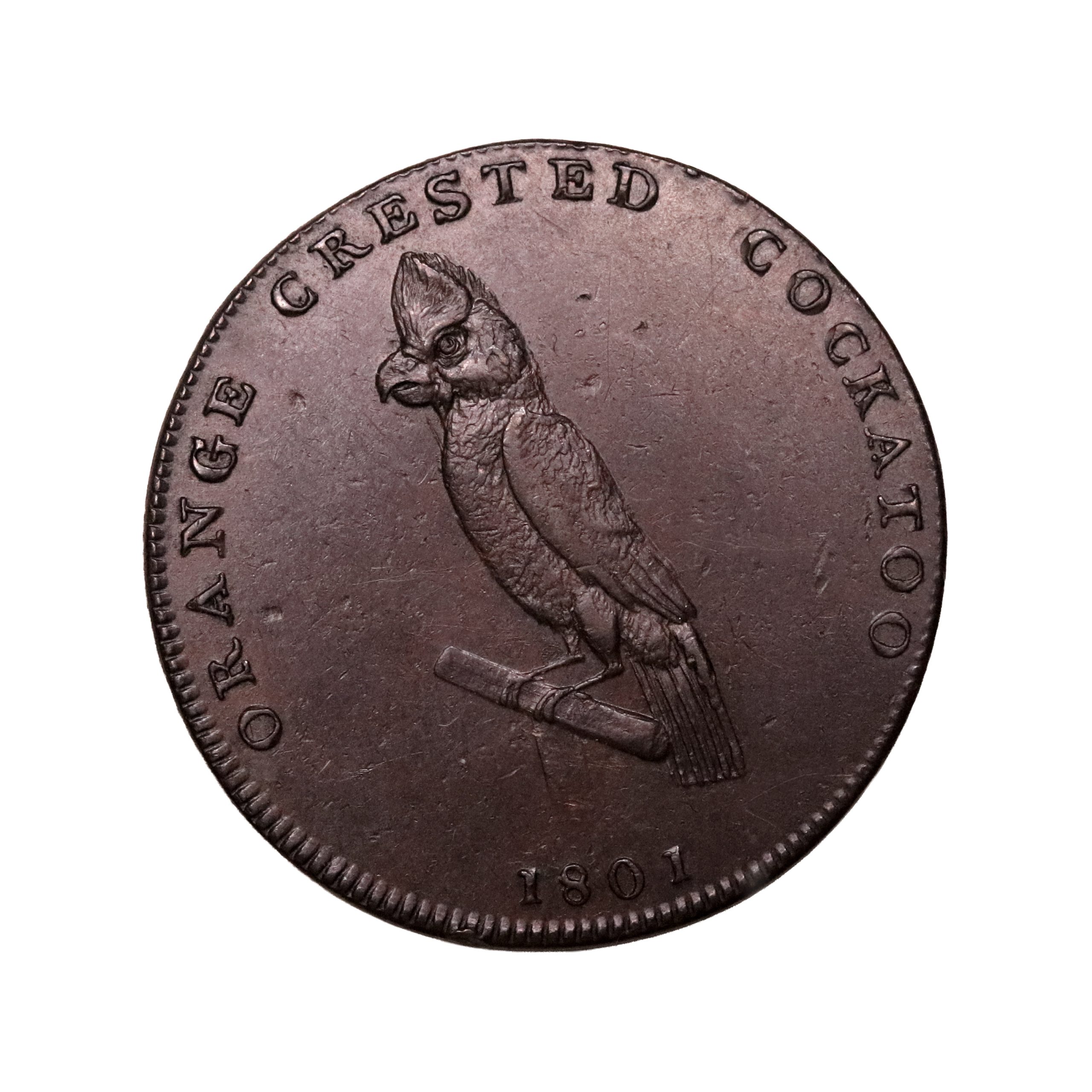 Middlesex, The Strand, Gilbert Pidcock; D&H 457, halfpenny struck in copper. Finishing off our small but important Pidcock offering we have the Wanderow and Cockatoo. Some light handling, brown and evenly patinated surfaces with some reflective fields. Good very fine.