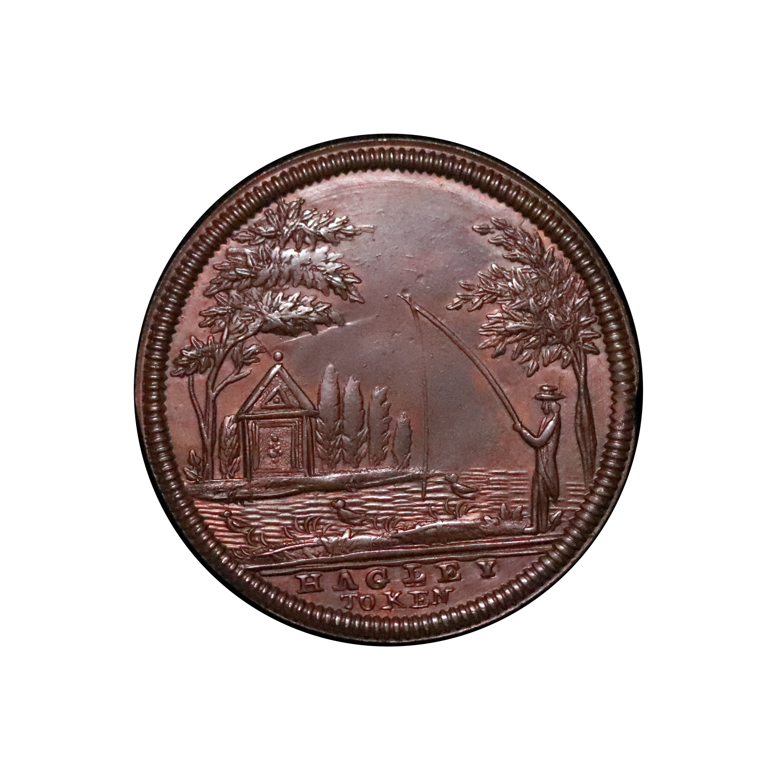 Worcestershire, Hagley, Thomas Spence; D&H 22a, halfpenny struck in copper, 10.09g. One of the classic 18th century provincial tokens. Some typical softness to the centres otherwise attractive even brown fields, hints of red. Rare. Extremely fine.