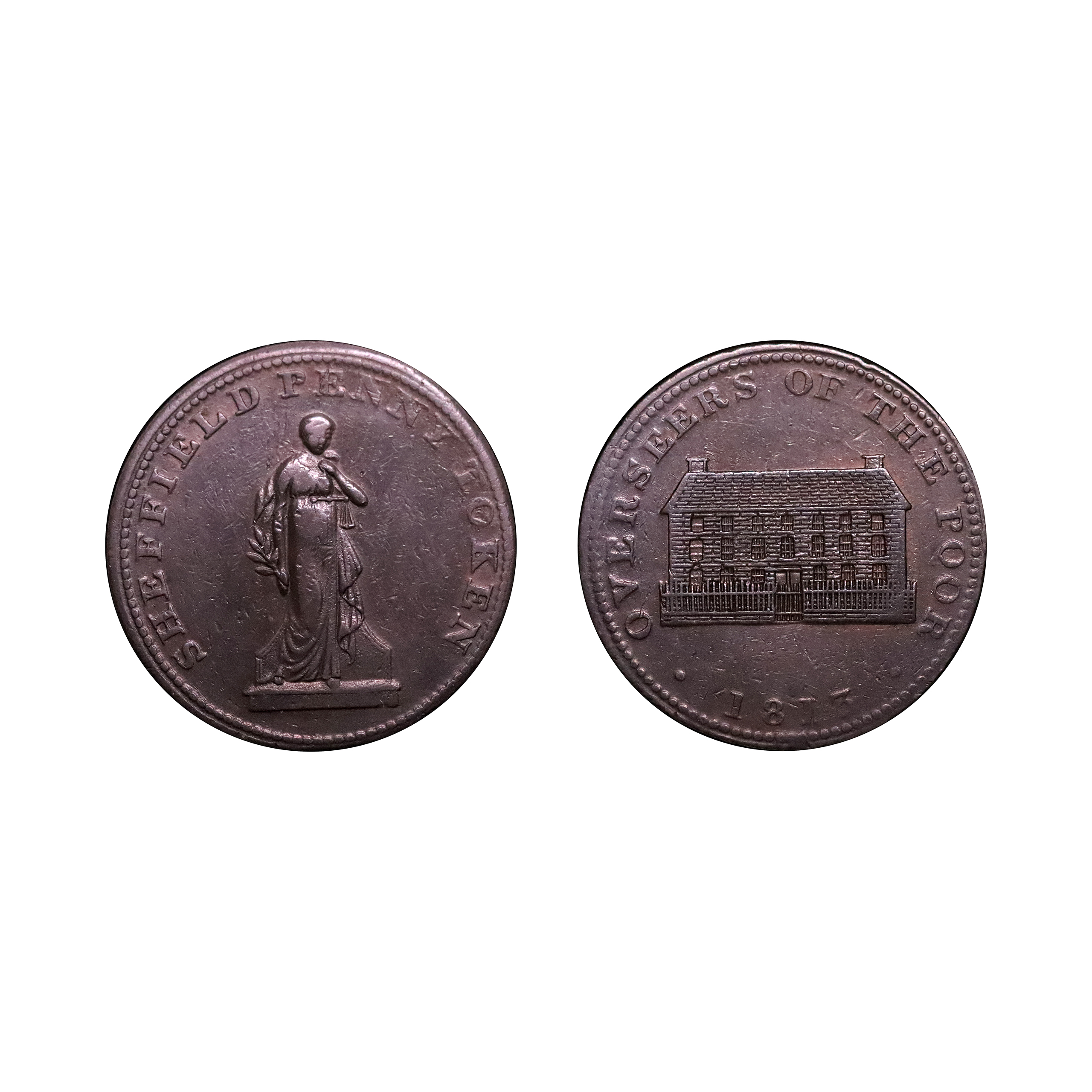 Yorkshire, Sheffield; Overseers of the Poor, W1015, copper penny, 22.14g. Lightly circulated but good honest wear. Fine only but very rare.