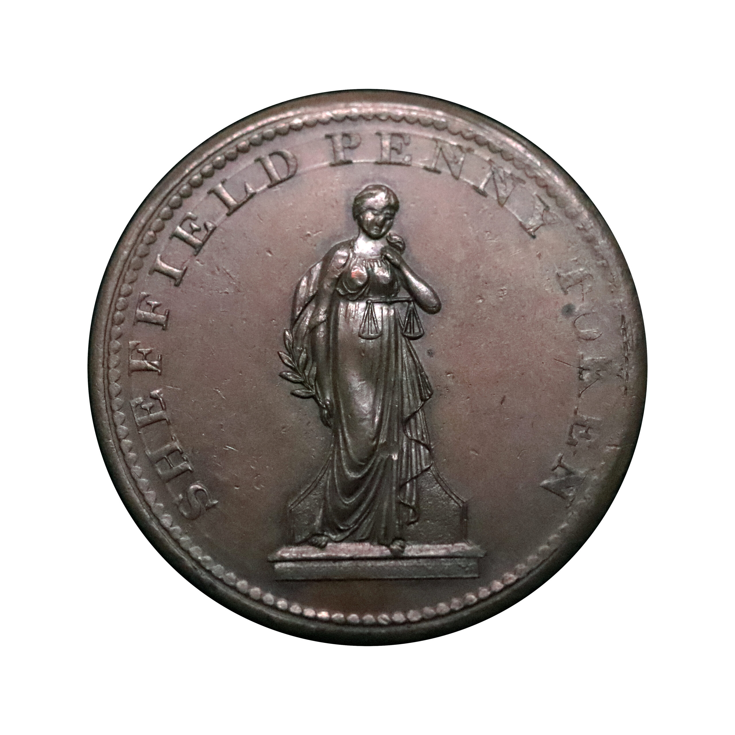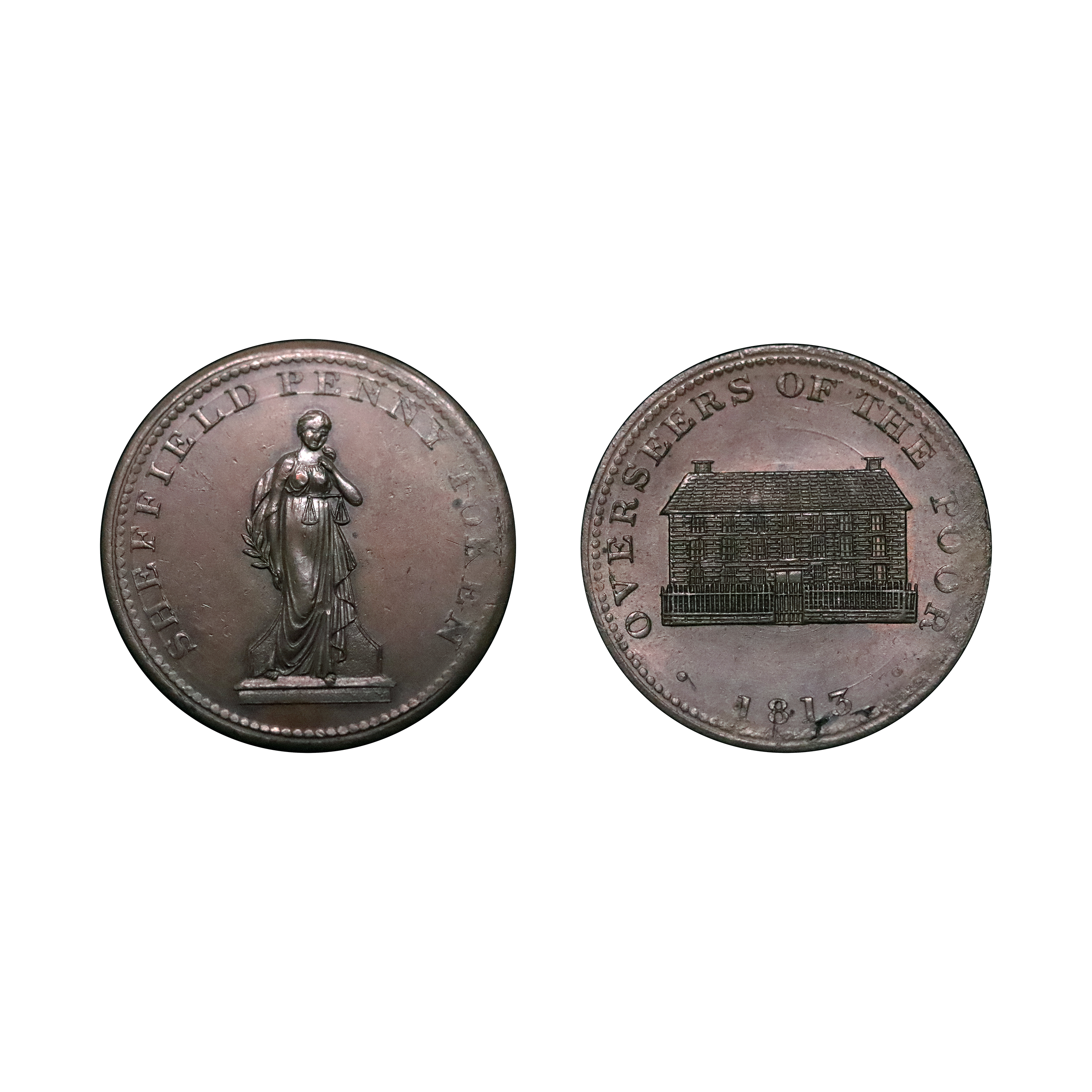 Yorkshire, Sheffield; Overseers of the Poor, W1018 – the Withers Plate, copper penny, 21.86g. Some planchet flaws with legends softly struck in parts. Otherwise, a very attractive with bold centres and glossy fields. Extremely fine and rare.