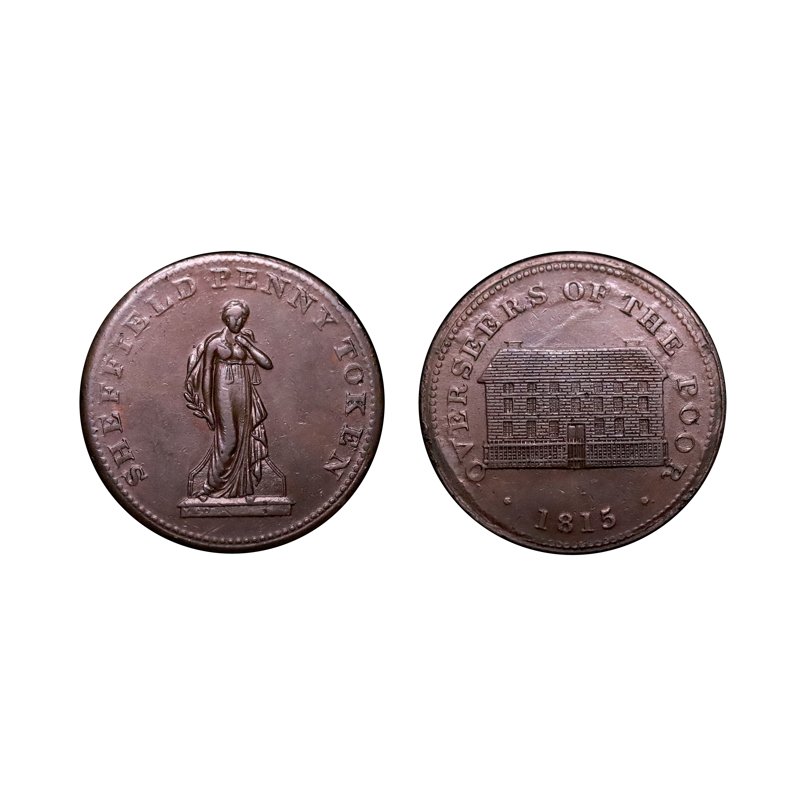 Yorkshire, Sheffield; Overseers of the Poor, W1032a, copper penny, 24.06g. Struck from a fractured obverse die, affecting the fields and rims. Very little circulation, about extremely fine or nearly so, rare.