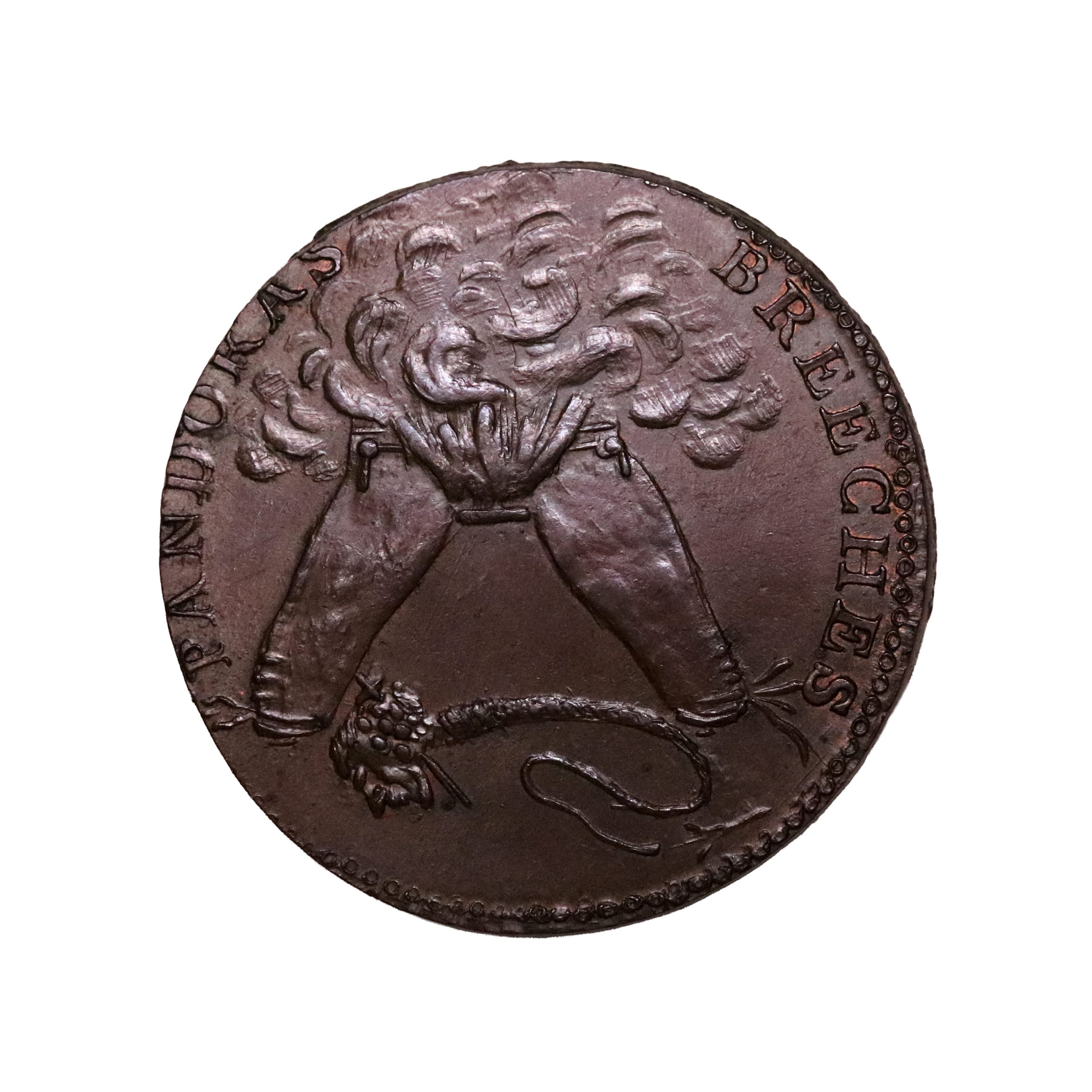 R : Pair of breeches on fire, serpent with man’s head under, PANDORAS BREECHES