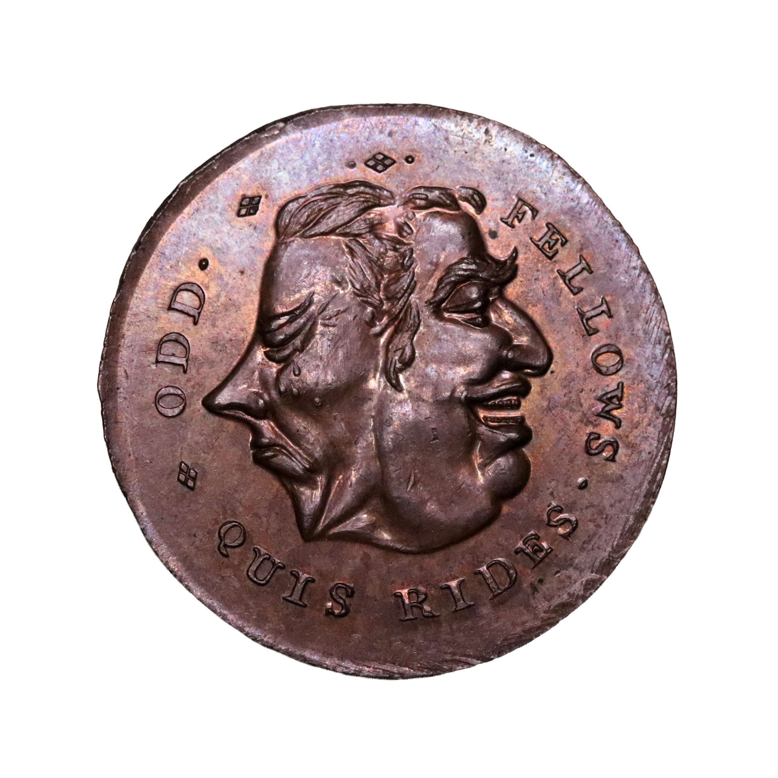 O : * QUIS RIDES., ODD . * .*. .FELLOWS, heads of Pitt and Fox conjoined