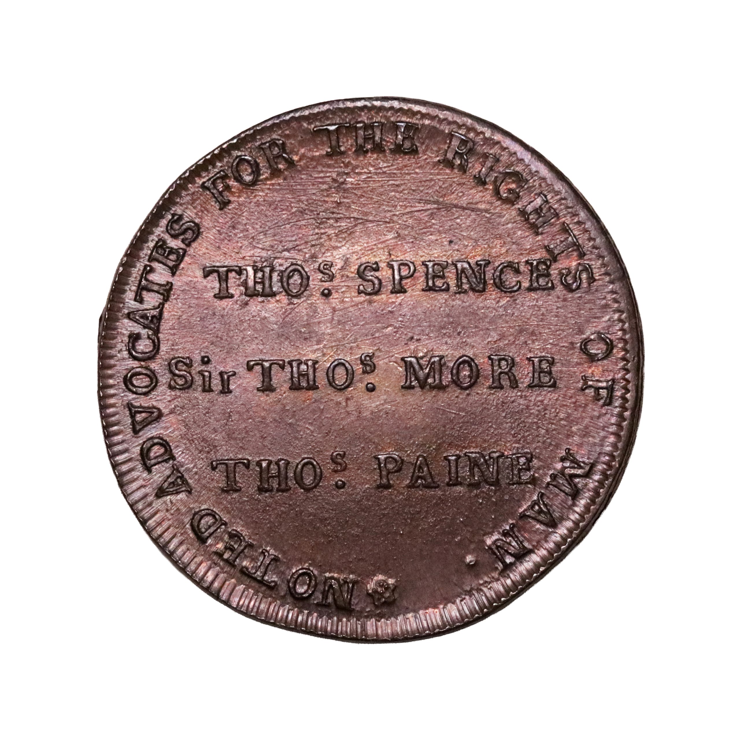 R : in centre THOs SPENCE, Sir THOs MORE, THOs PAINE, and around this *NOTED ADVOCATES FOR THE RIGHTS OF MAN.