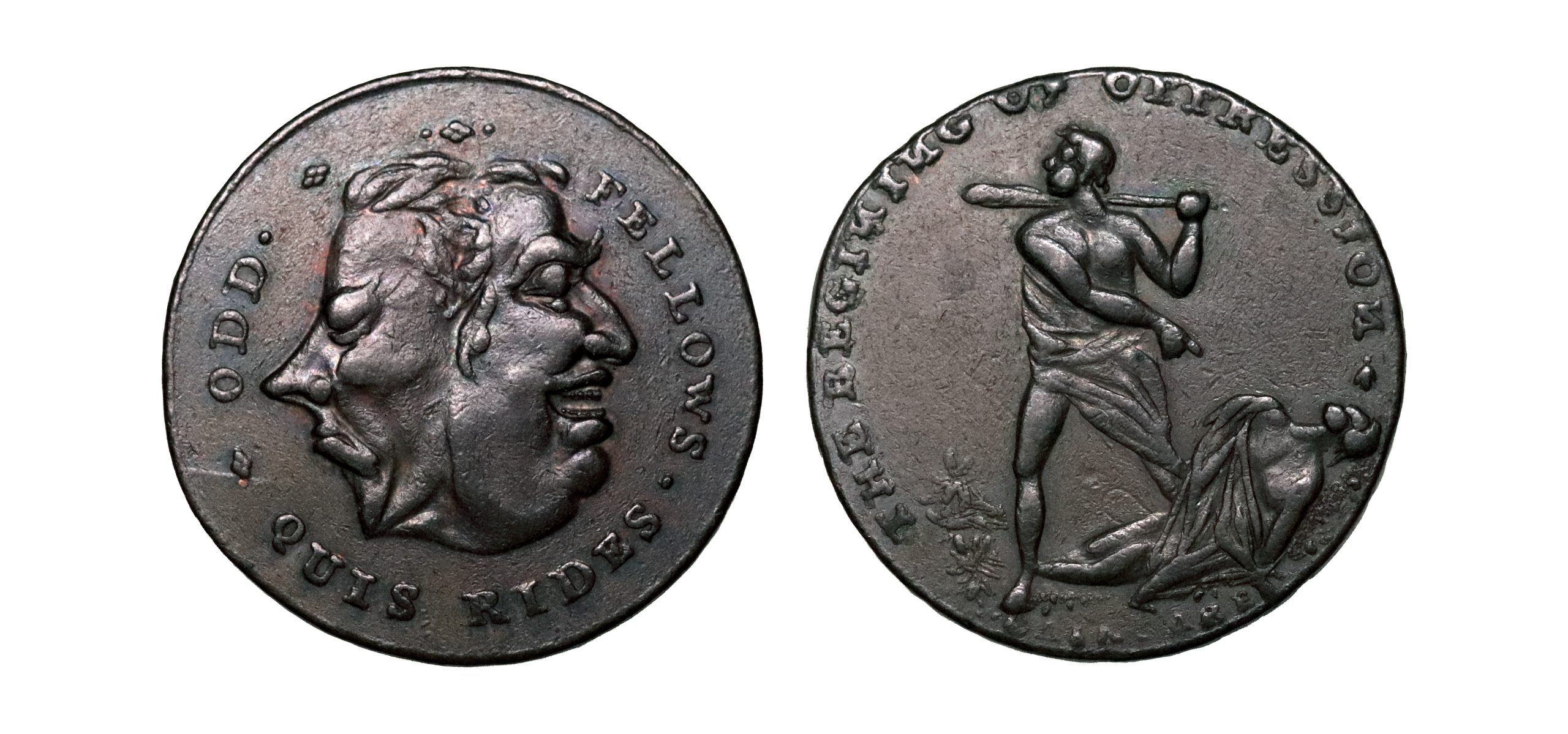 O : * QUIS RIDES., ODD . * .*. .FELLOWS, heads of Pitt and Fox conjoined