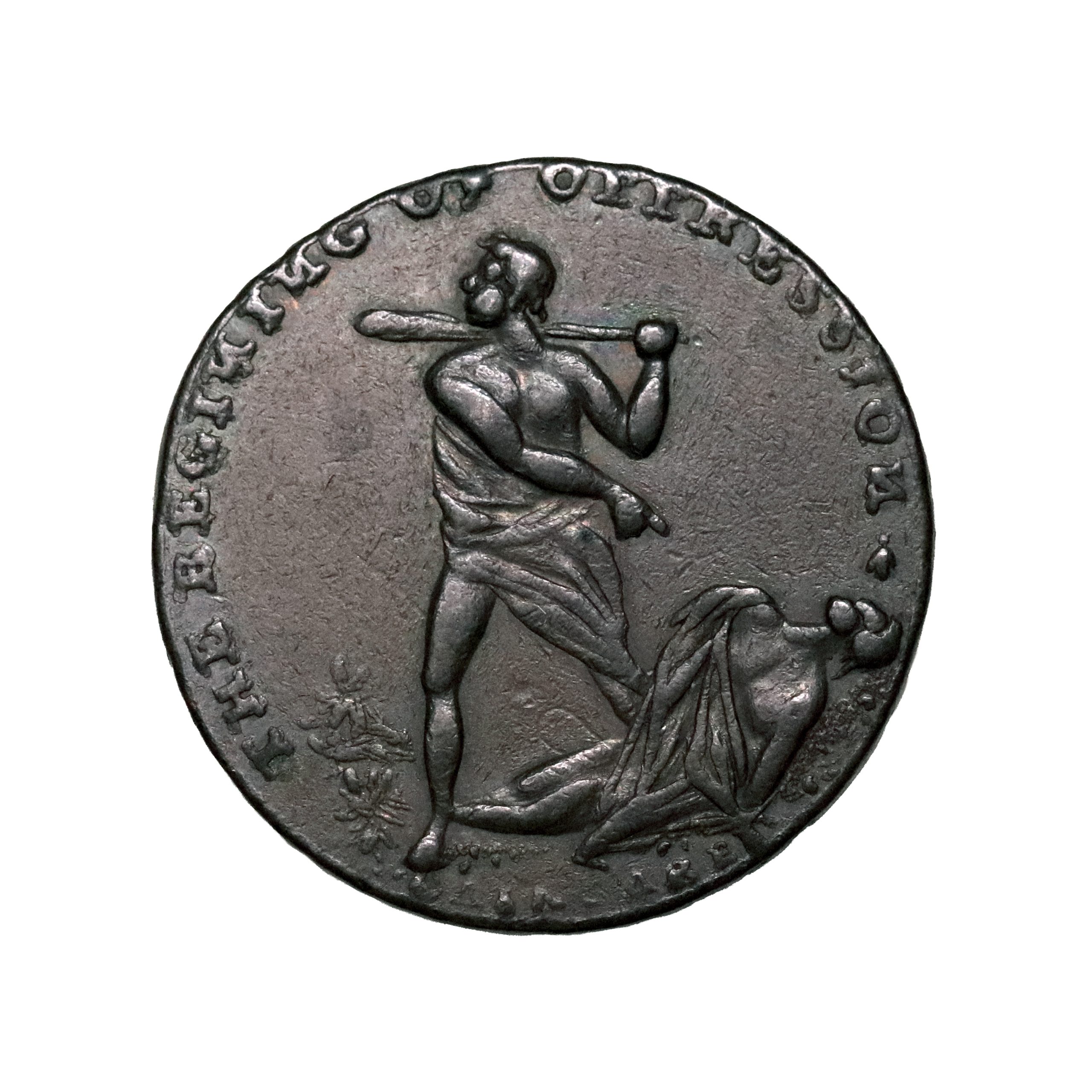 Middlesex, Little Turnstile, Thomas Spence; D&H 801, halfpenny struck in copper. Darkly toned with somewhat pickled surfaces. A bold fine.