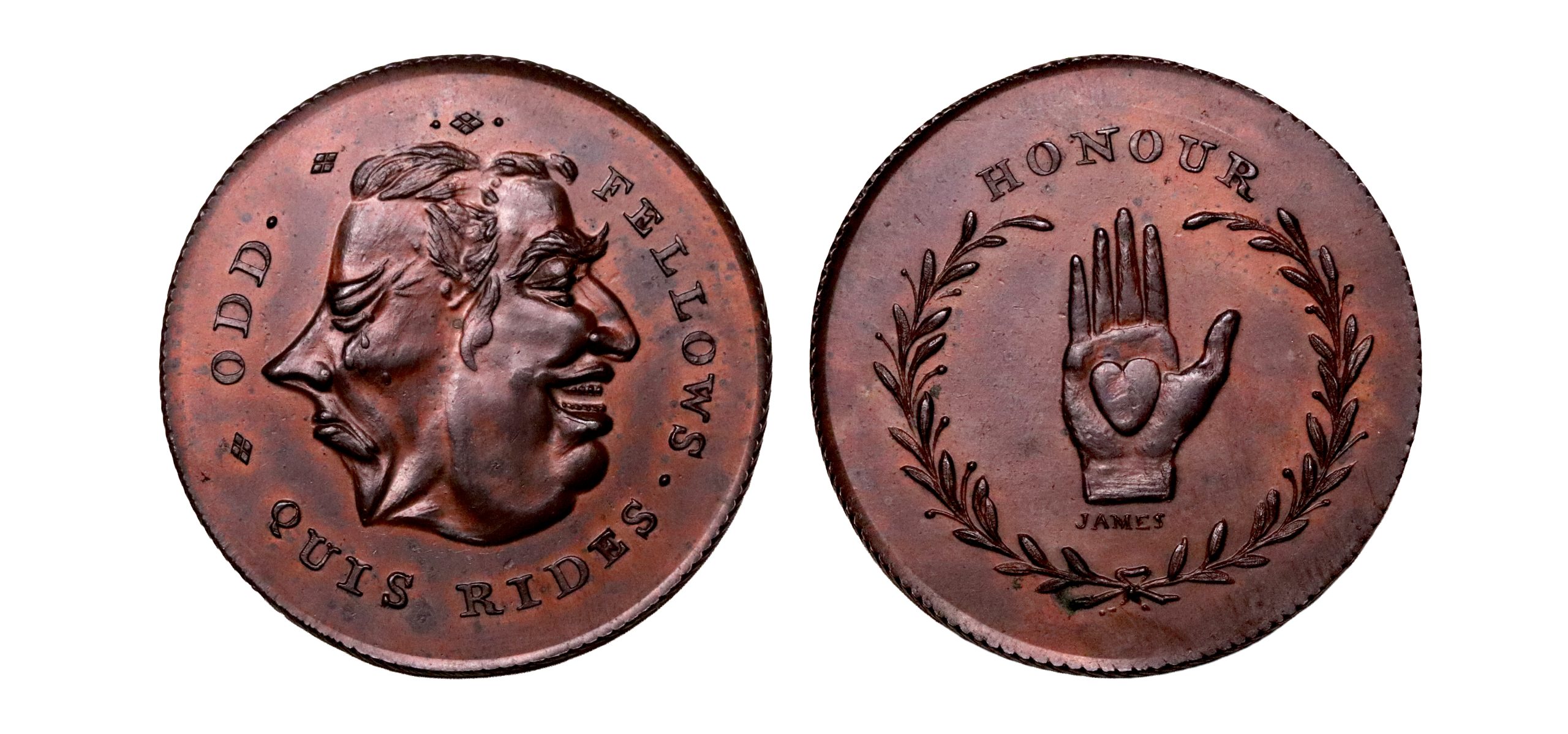 O : * QUIS RIDES., ODD . * .*. .FELLOWS, heads of Pitt and Fox conjoined