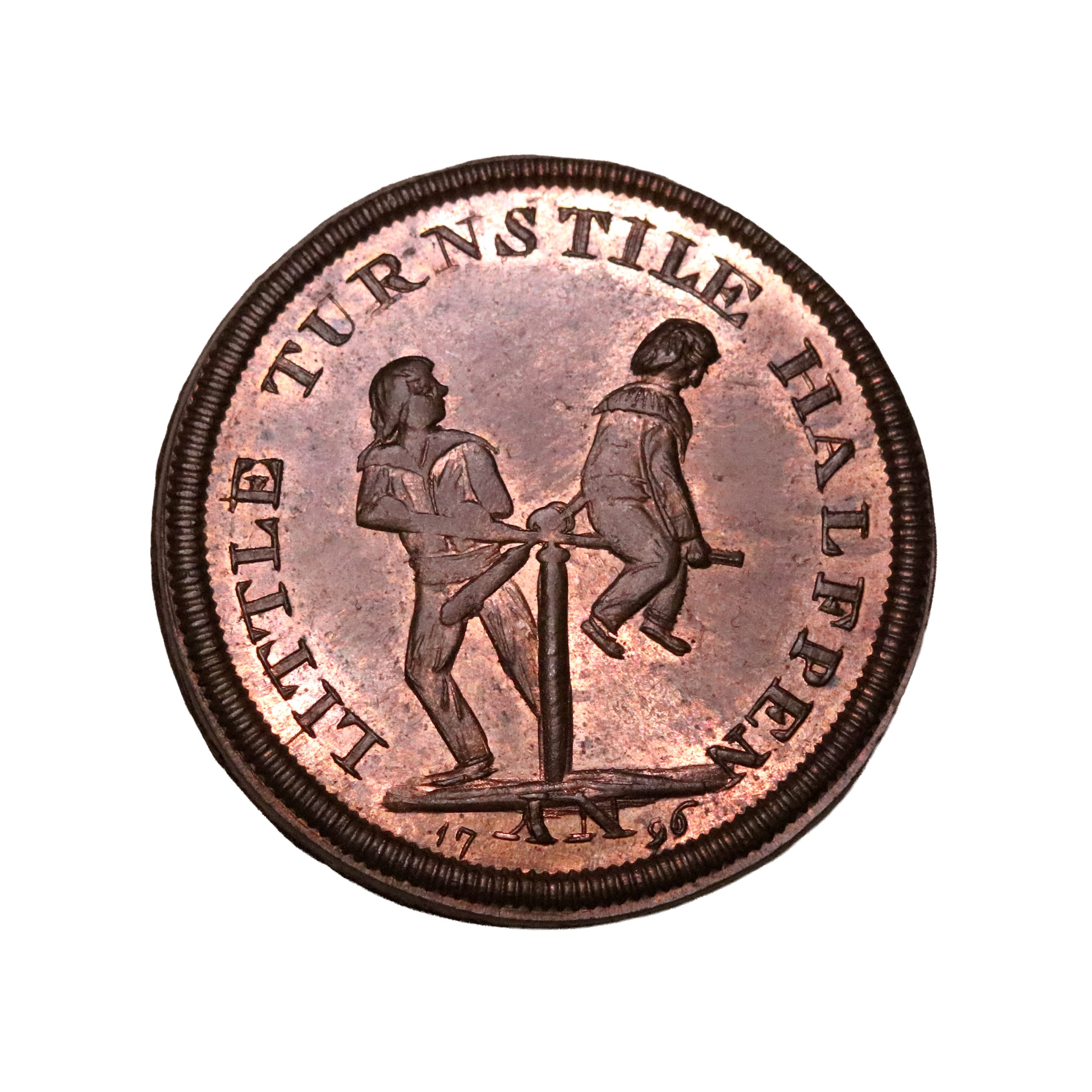 R : Two boys at a turnstile, LITTLE TURNSTILE HALFPENNY, 17-96