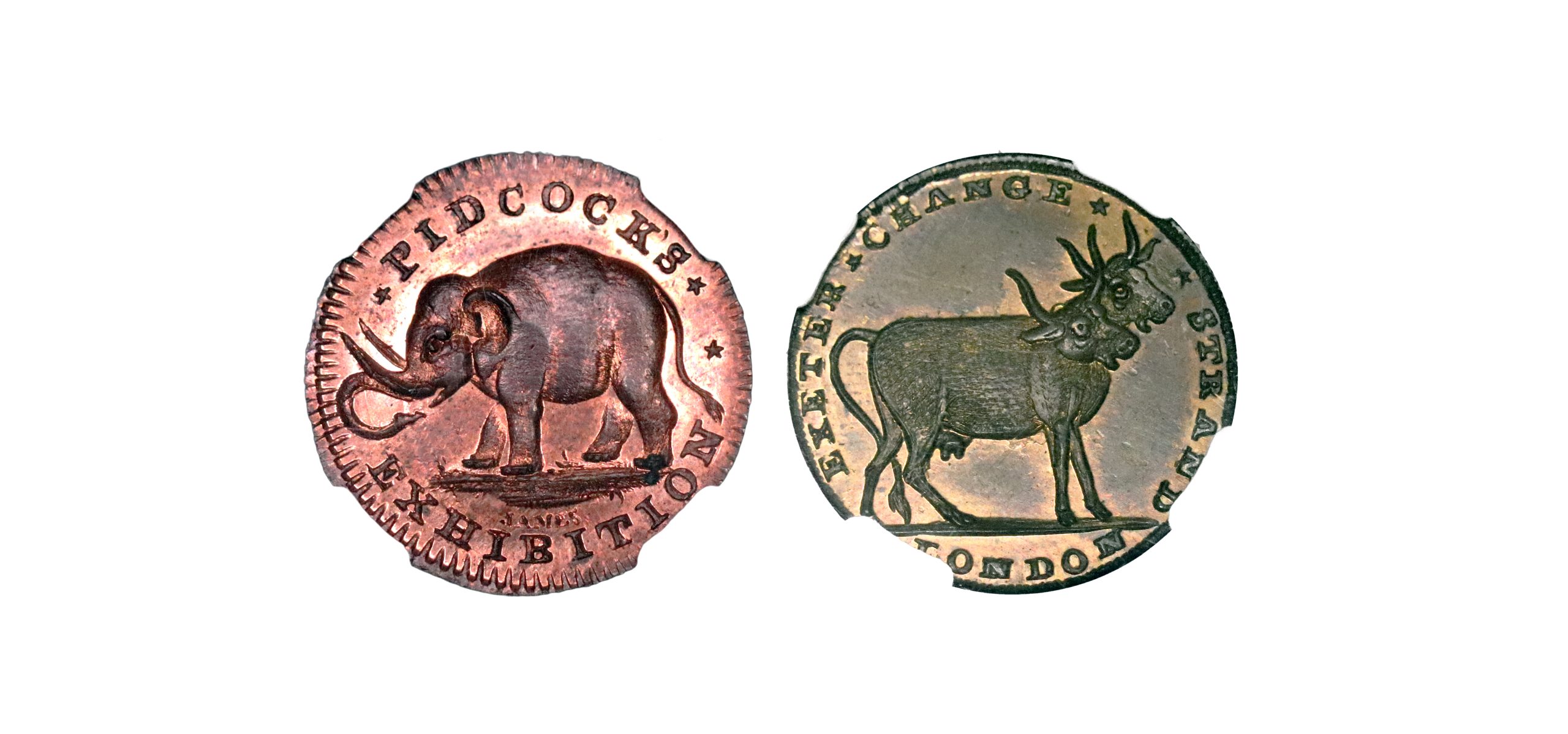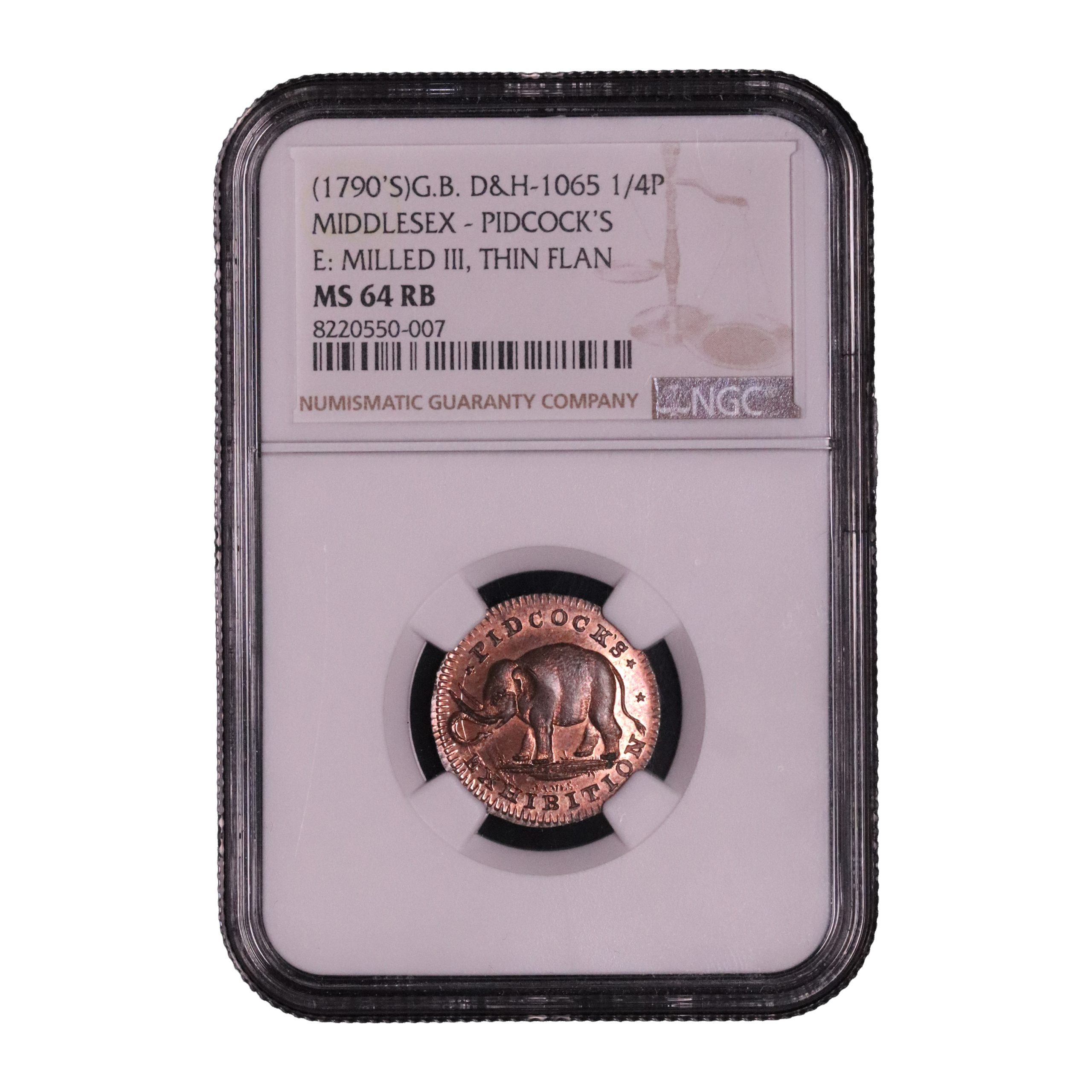 Lot 214 – Middlesex Pidcock’s Farthing D&H 1065, mostly red Gem, NGC 64RB