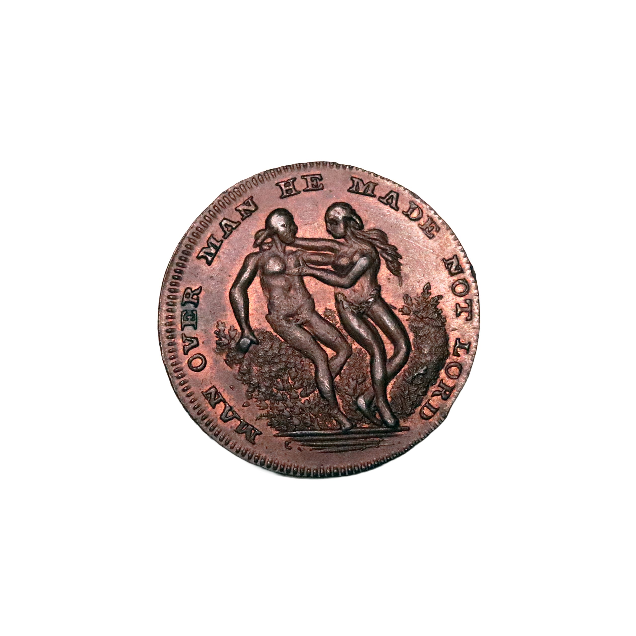 Middlesex, Little Turnstile, Thomas Spence; D&H 1089, farthing struck in copper. Slave reverse variety. Struck on a broad planchet with even brown and faded red surfaces. Extremely fine or better. Scarce.
