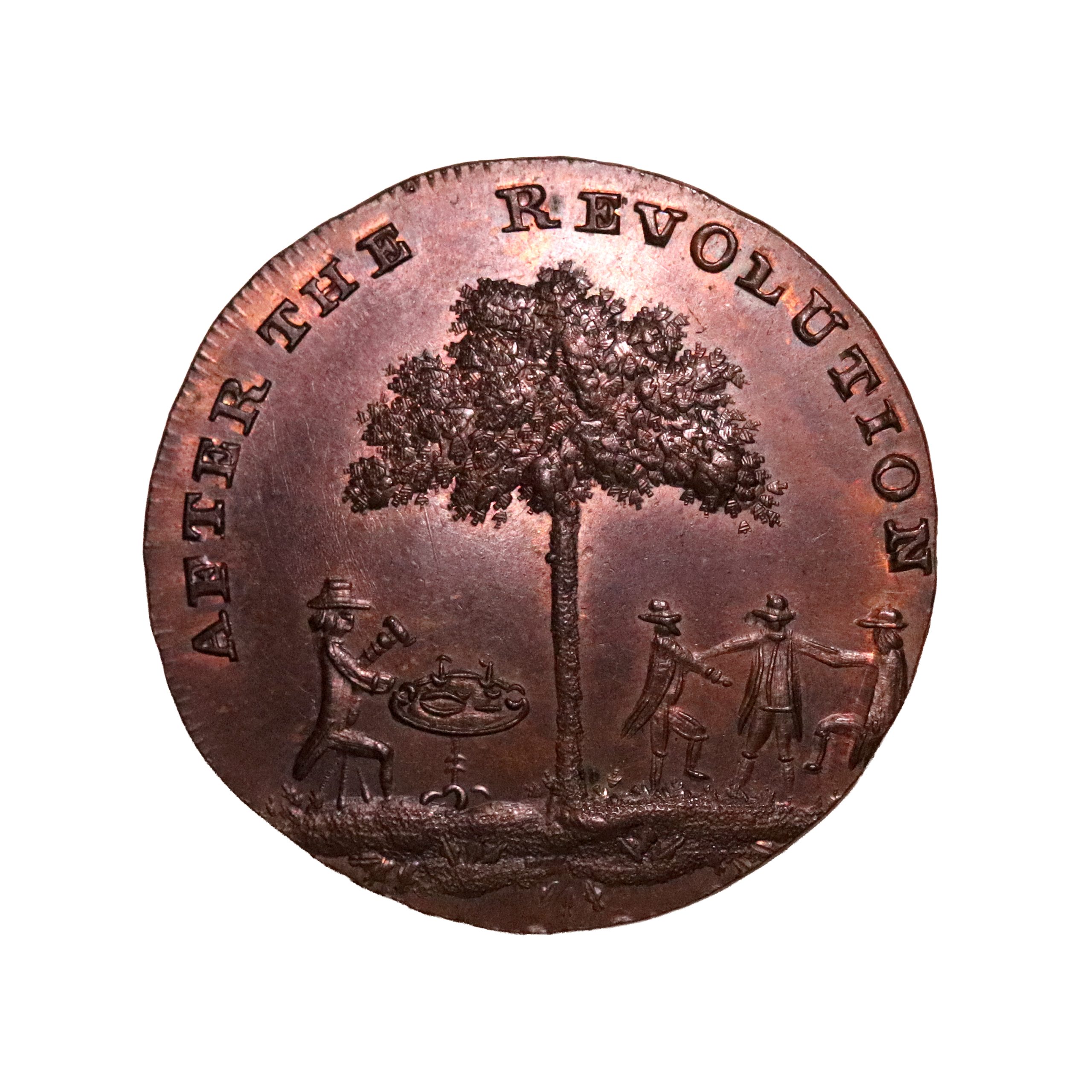 Northumberland, Newcastle, Thomas Spence; D&H 14, halfpenny mule struck in copper. Another choice, dark brown and red example. Notice the reverse rim at 6 o’clock show what might be mistaken as bruises but are actually part of the edge device, as struck. Sharp with strong eye appeal, good extremely fine. Scarce.