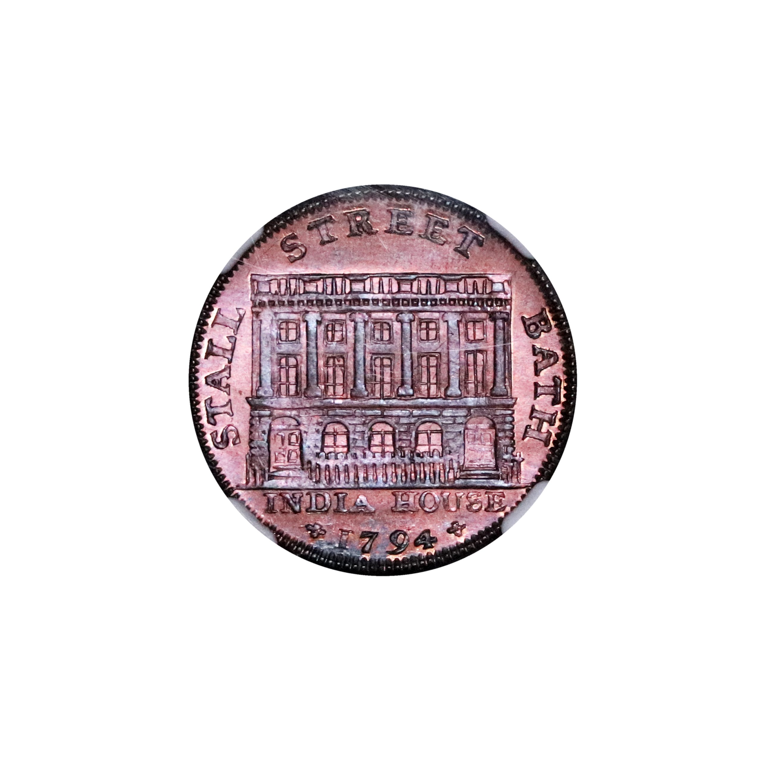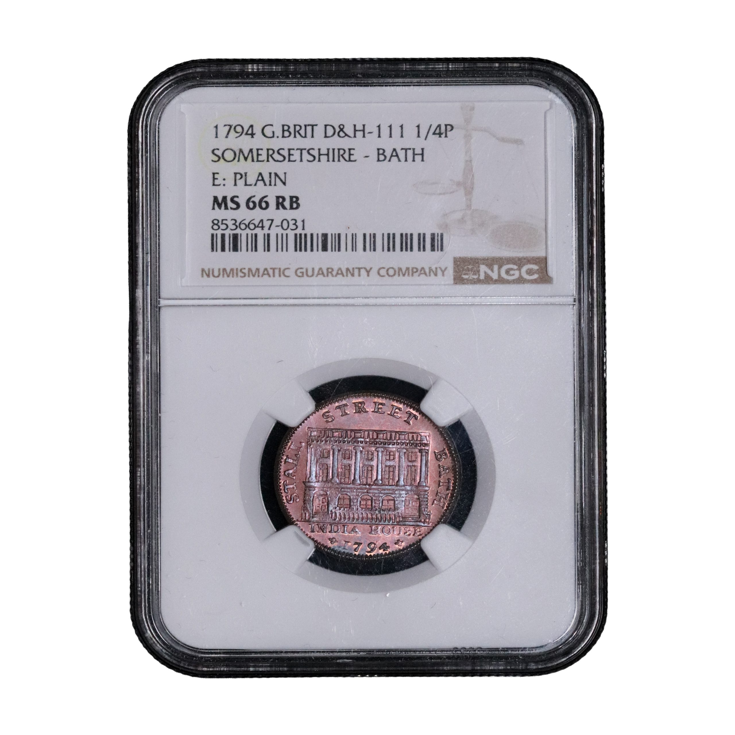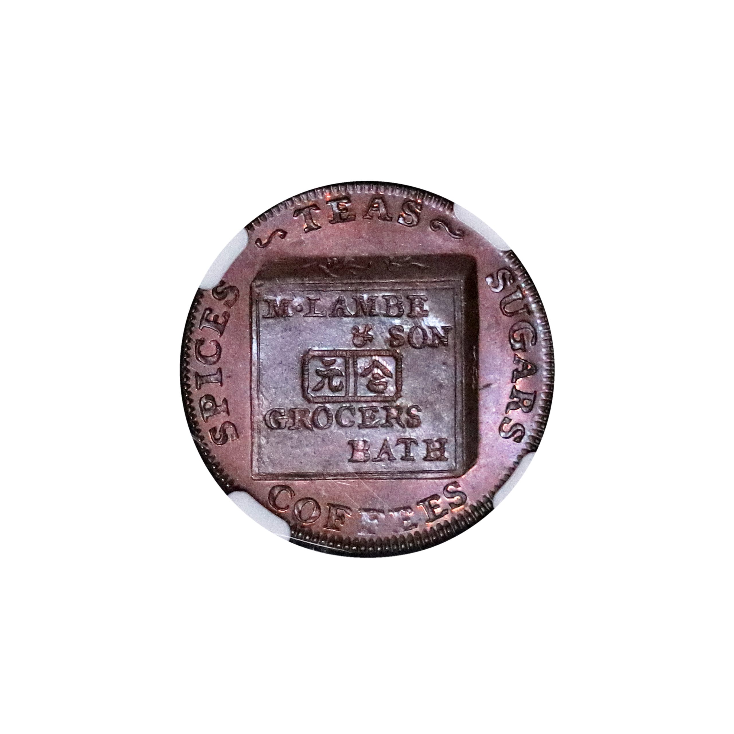 Somerset, Bath, Mary Lambe & Son; D&H 111, farthing struck in copper. A super little farthing, very sharp and as struck (Gem). Currently housed in an NGC 66RB holder.