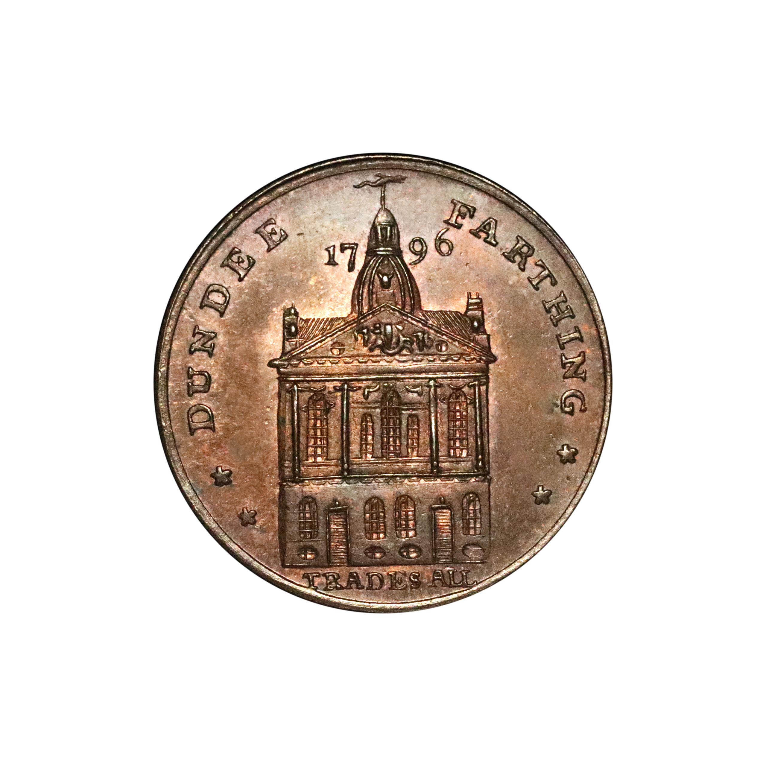Dundee, James Wright Jnr; D&H 40, copper farthing, 4.65g. Crisp, well struck example with red and brown fields, attractive. Scarce. Good extremely fine.