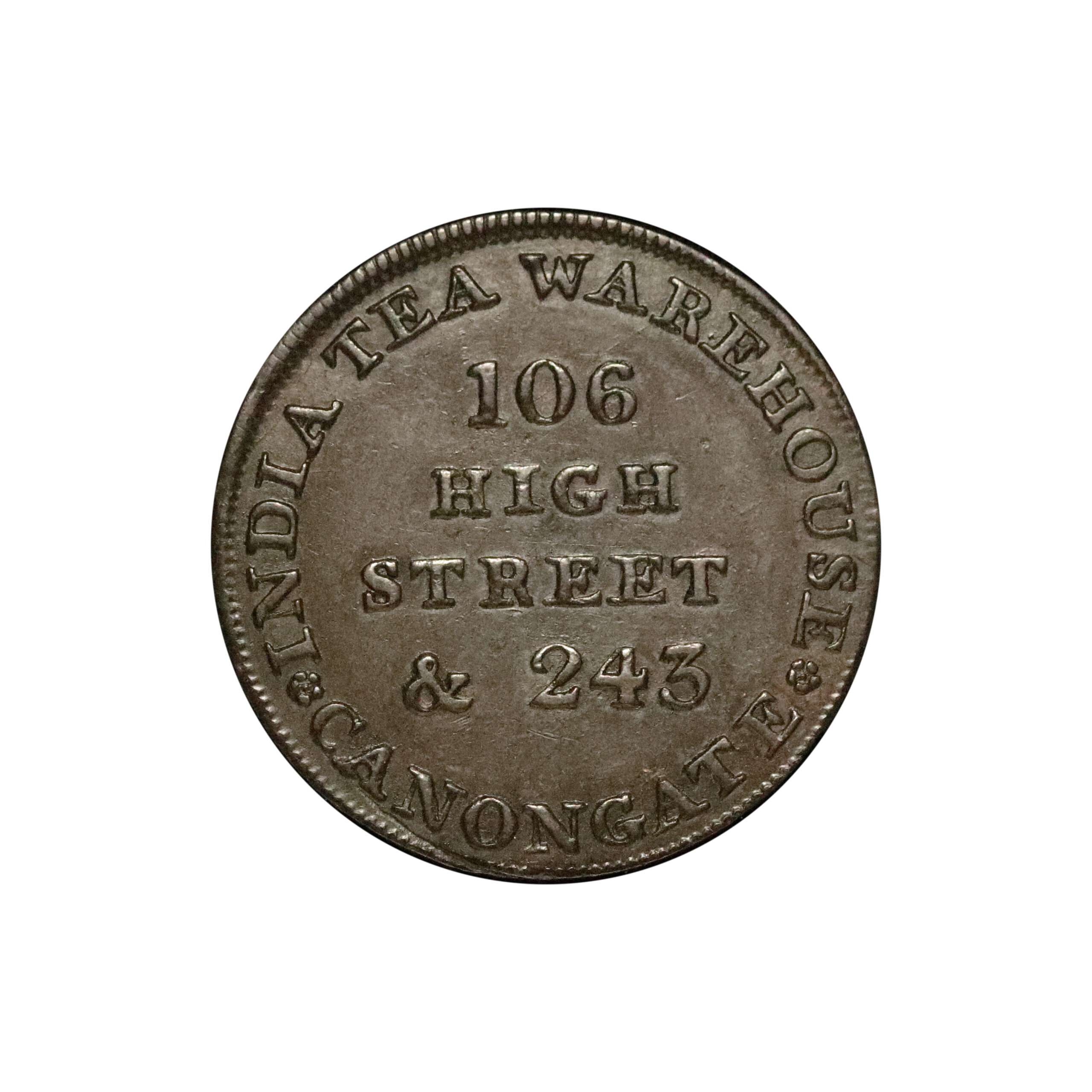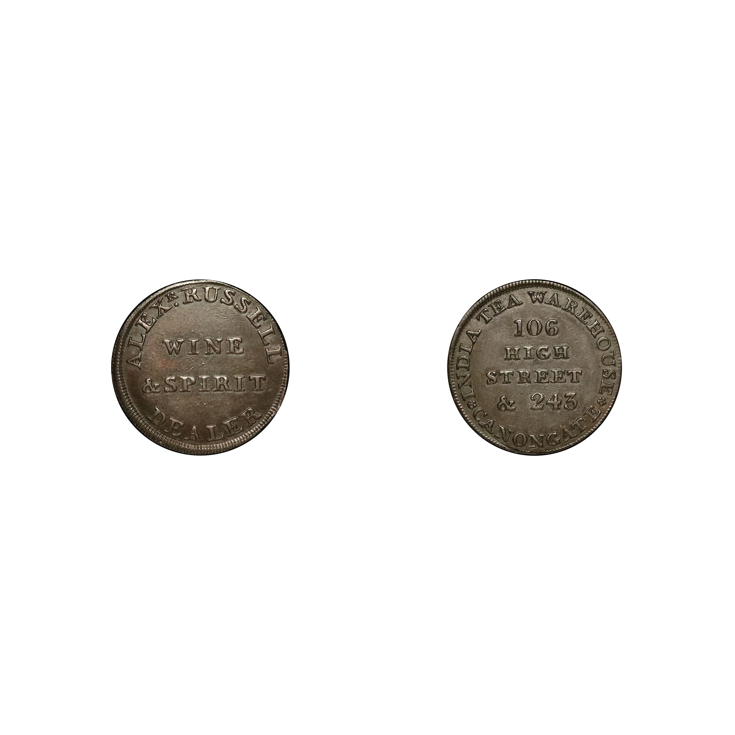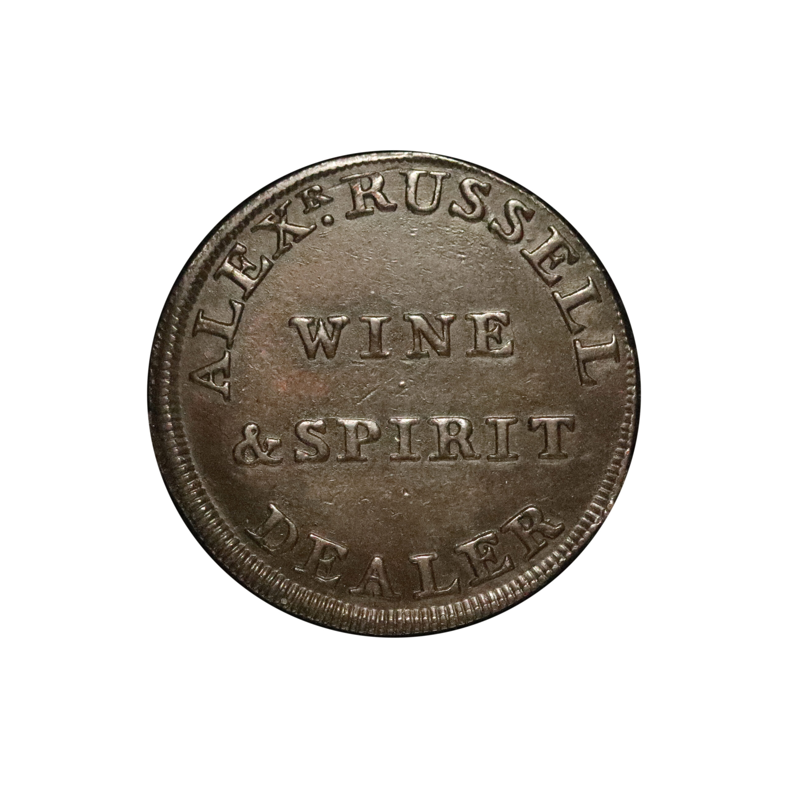 Edinburgh, Alexander Russell; D&H 119, farthing struck in copper, 2.80g. Struck on a thin planchet with sharp details and even patina. Very fine or better for type.