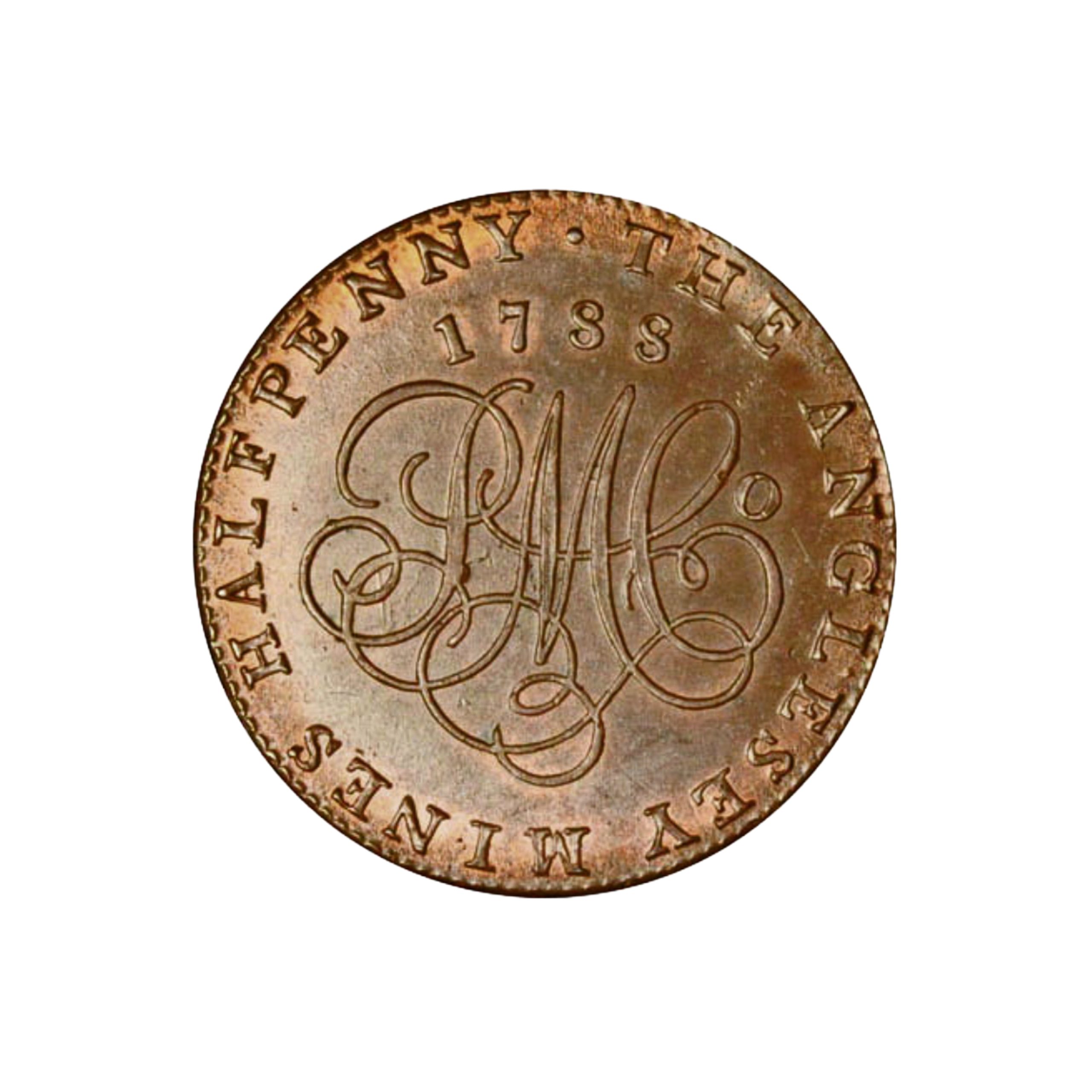Anglesey, Amlwch, Parys Mines Company; D&H 275, halfpenny struck in copper. A choice example with faded red and brown surfaces. Attractive, good extremely fine .