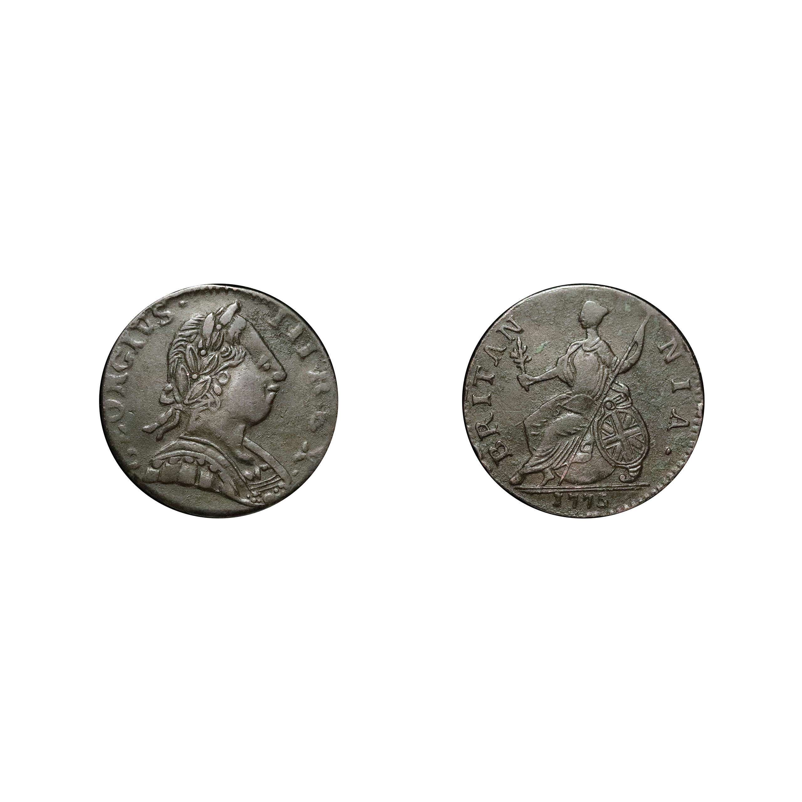 LOT 439 George III 1775 Copper Halfpenny, Coin Z Type