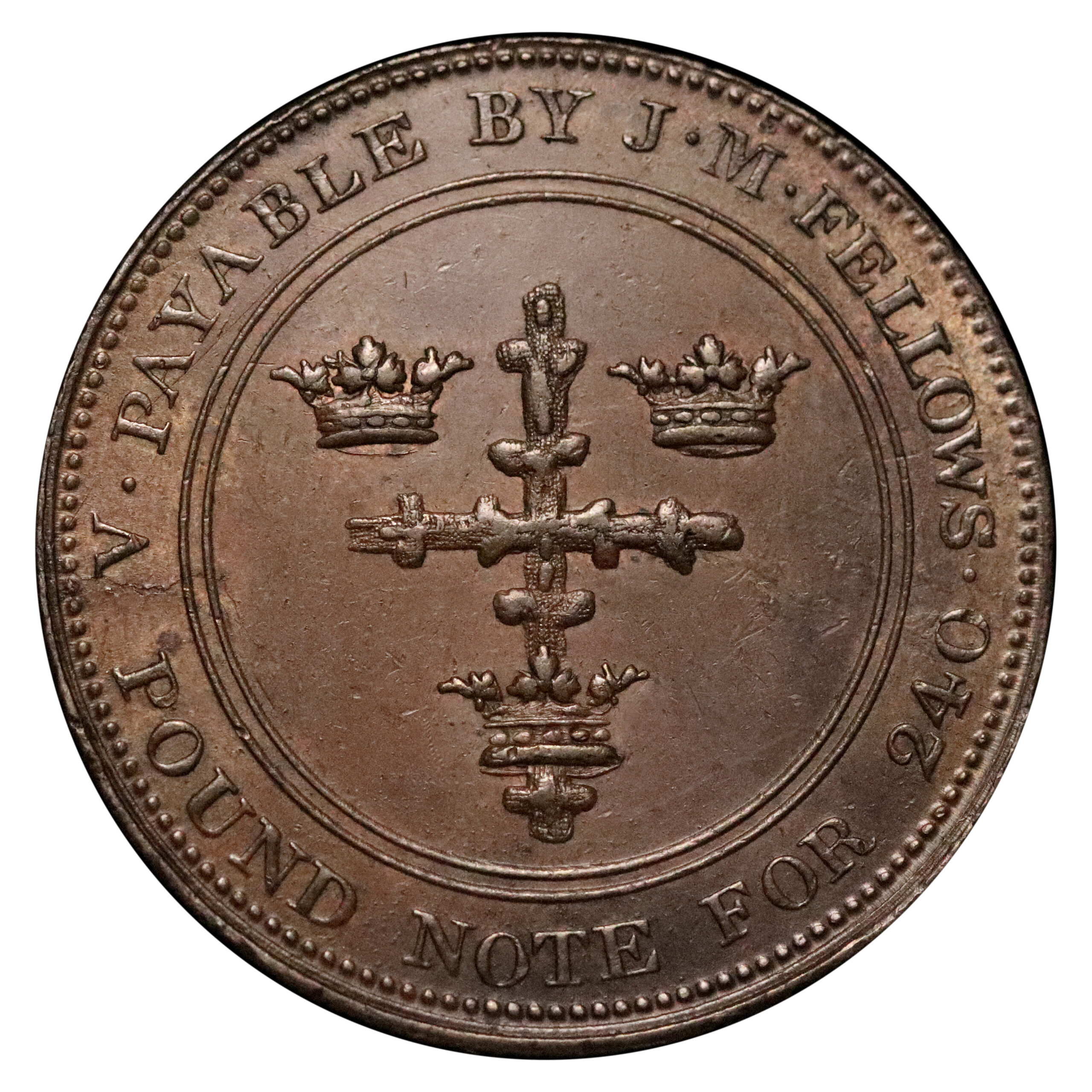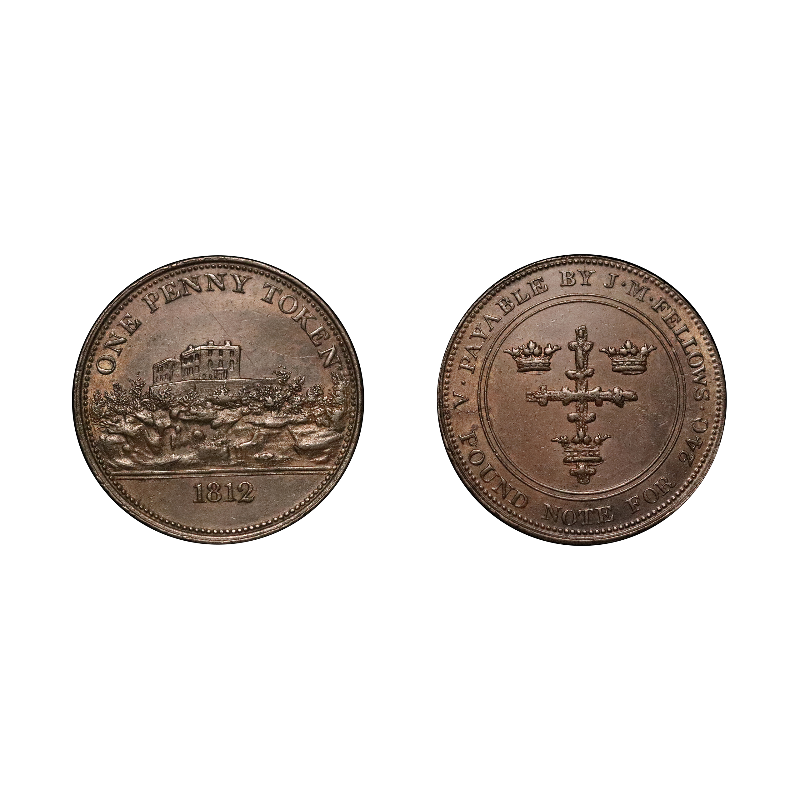 Nottinghamshire, Nottingham; J.M. Fellows, W940, copper penny, 21.35g. Die breaks in the obverse fields otherwise a rather crisp example with hints of original colour. Good very fine, perhaps a little better.