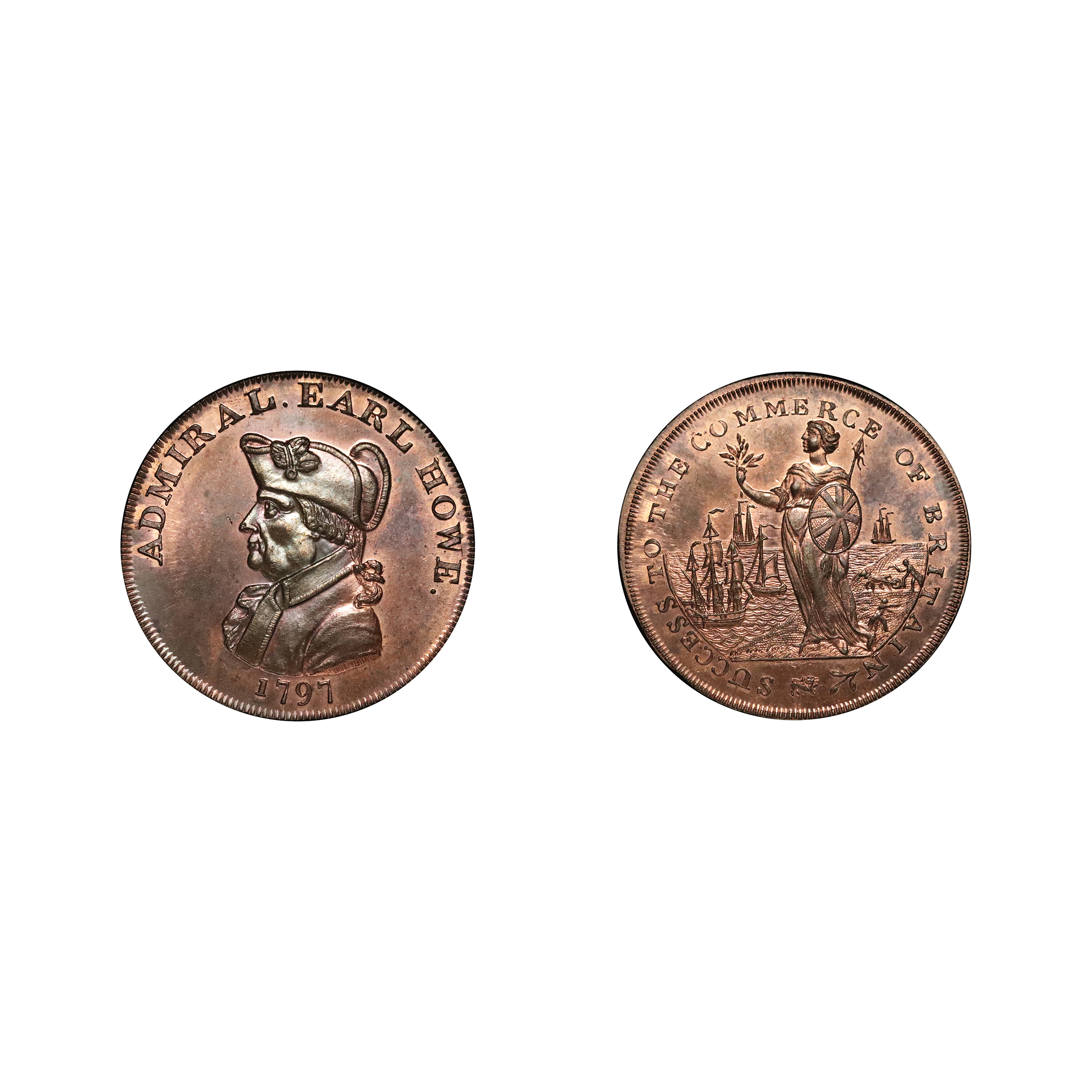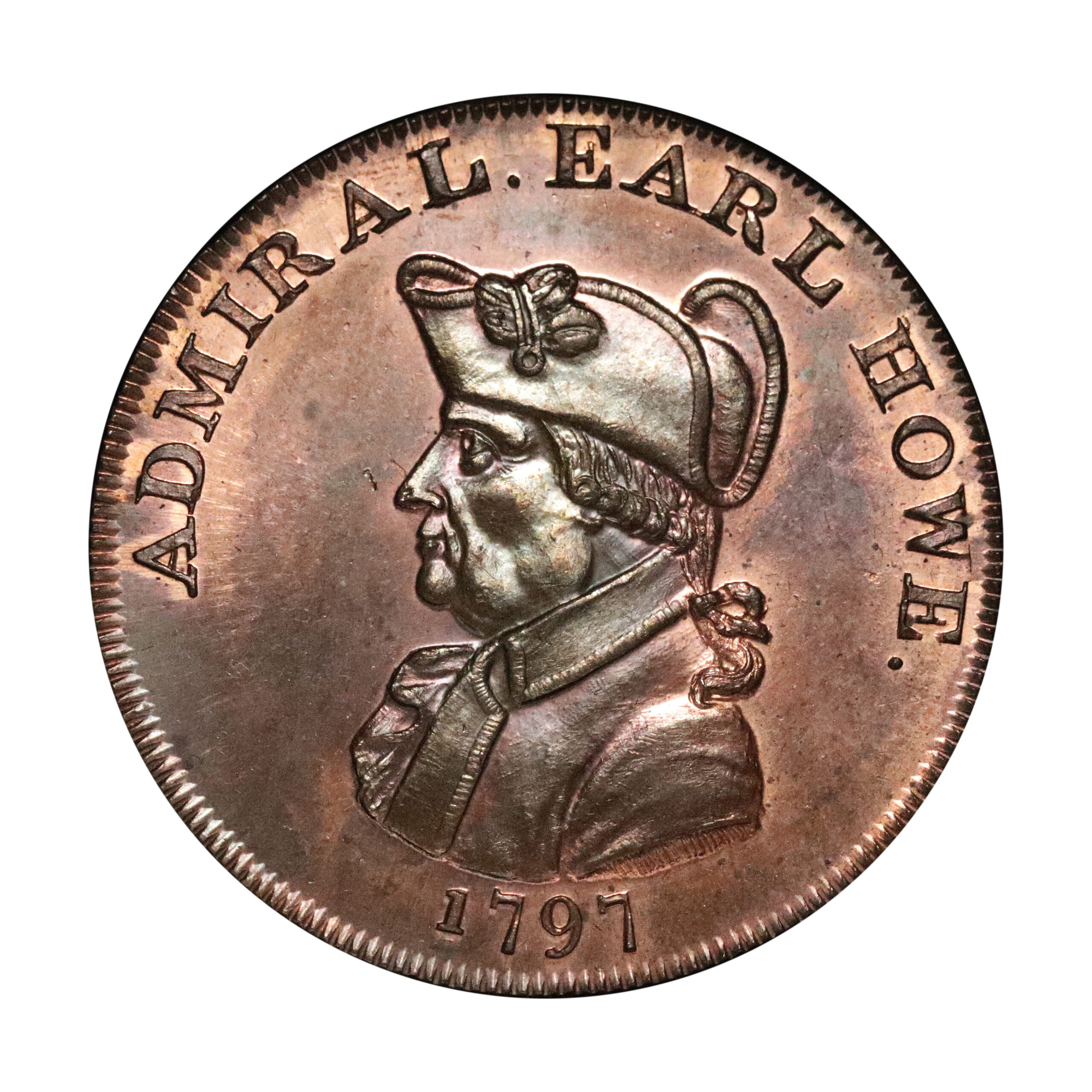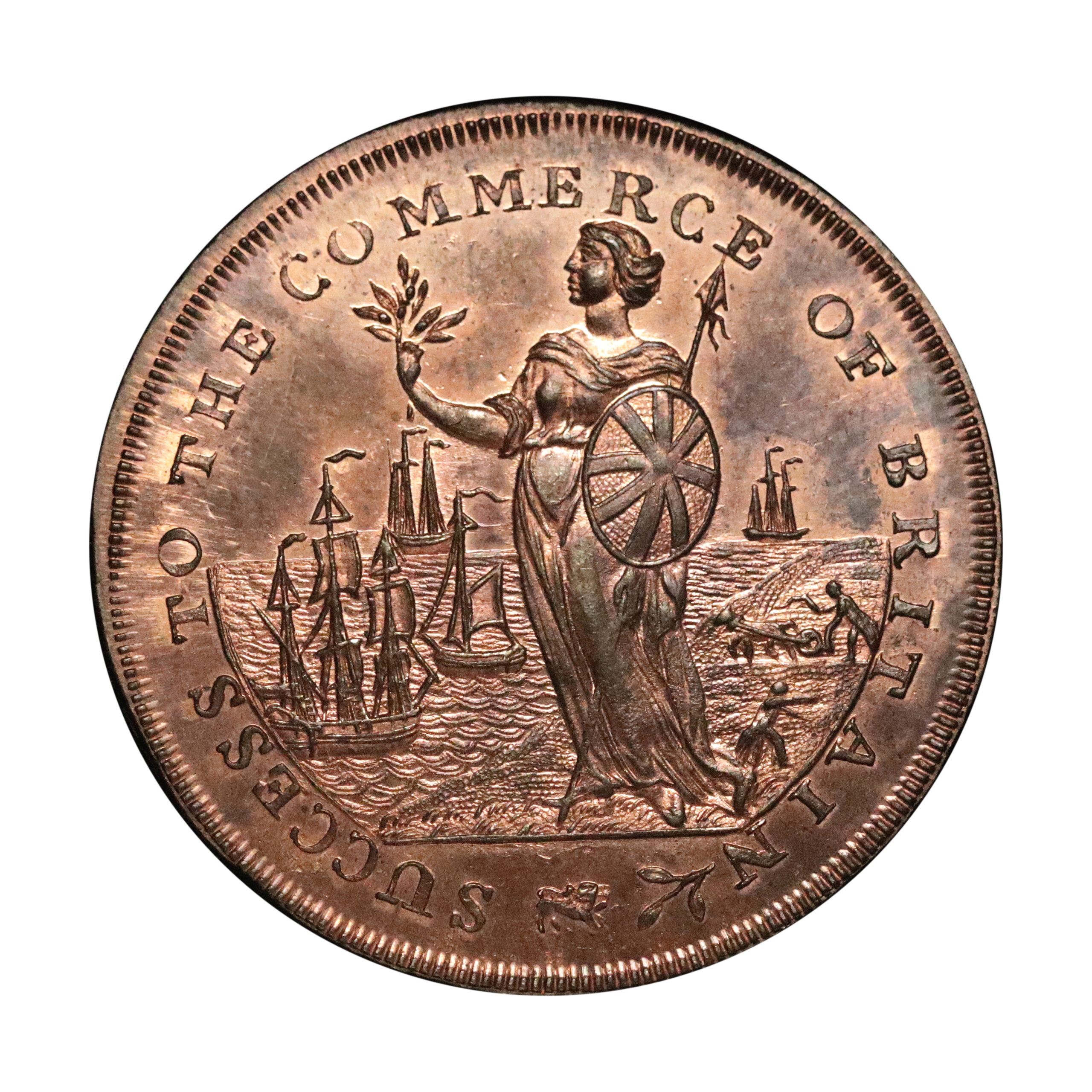 Emsworth, Peter Kempson, D&H 27, halfpenny mule in copper. 12.05g. Struck on a broad planchet, also used by Kempson on his Norfolk Blofield mules. Sharp, retaining virtually full original colour, rather scarce. About as struck.