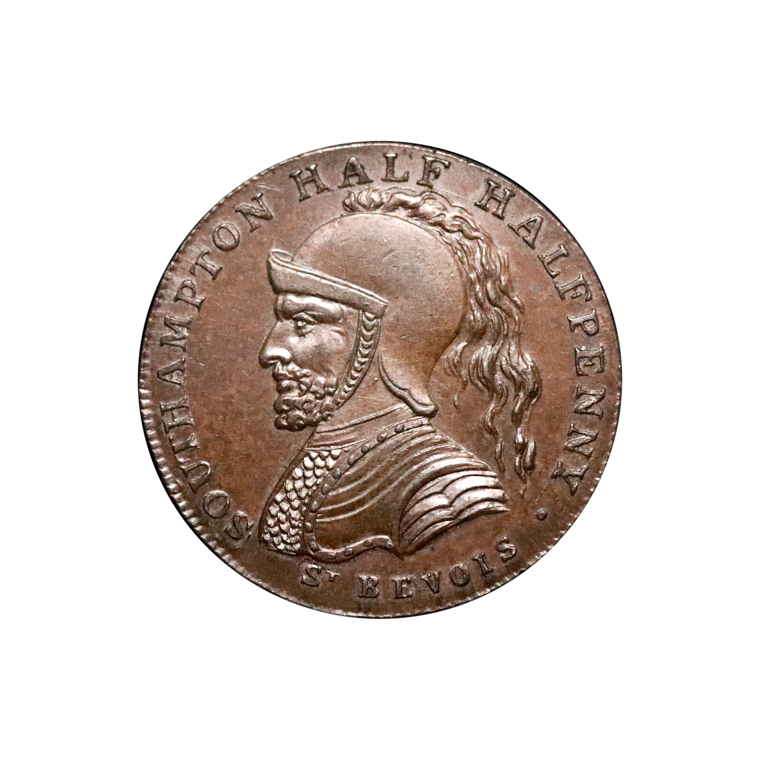 Southampton, Peter Kempson, D&H 96, Westwood’s half-halfpenny struck in copper. 5.66g. Well struck with even brown fields. Listed as rare. Extremely fine.