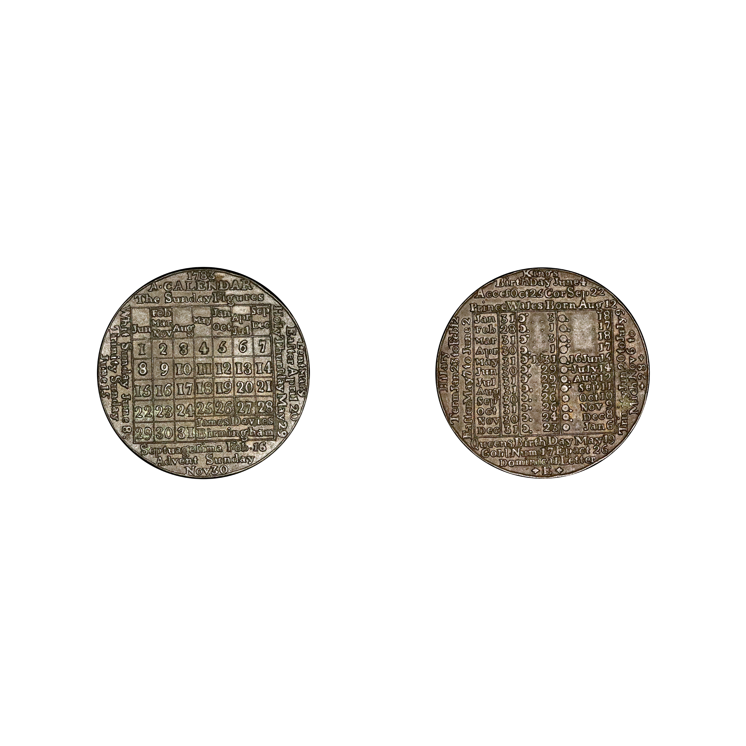 British Tokens & Medallions, Calendar Medals
