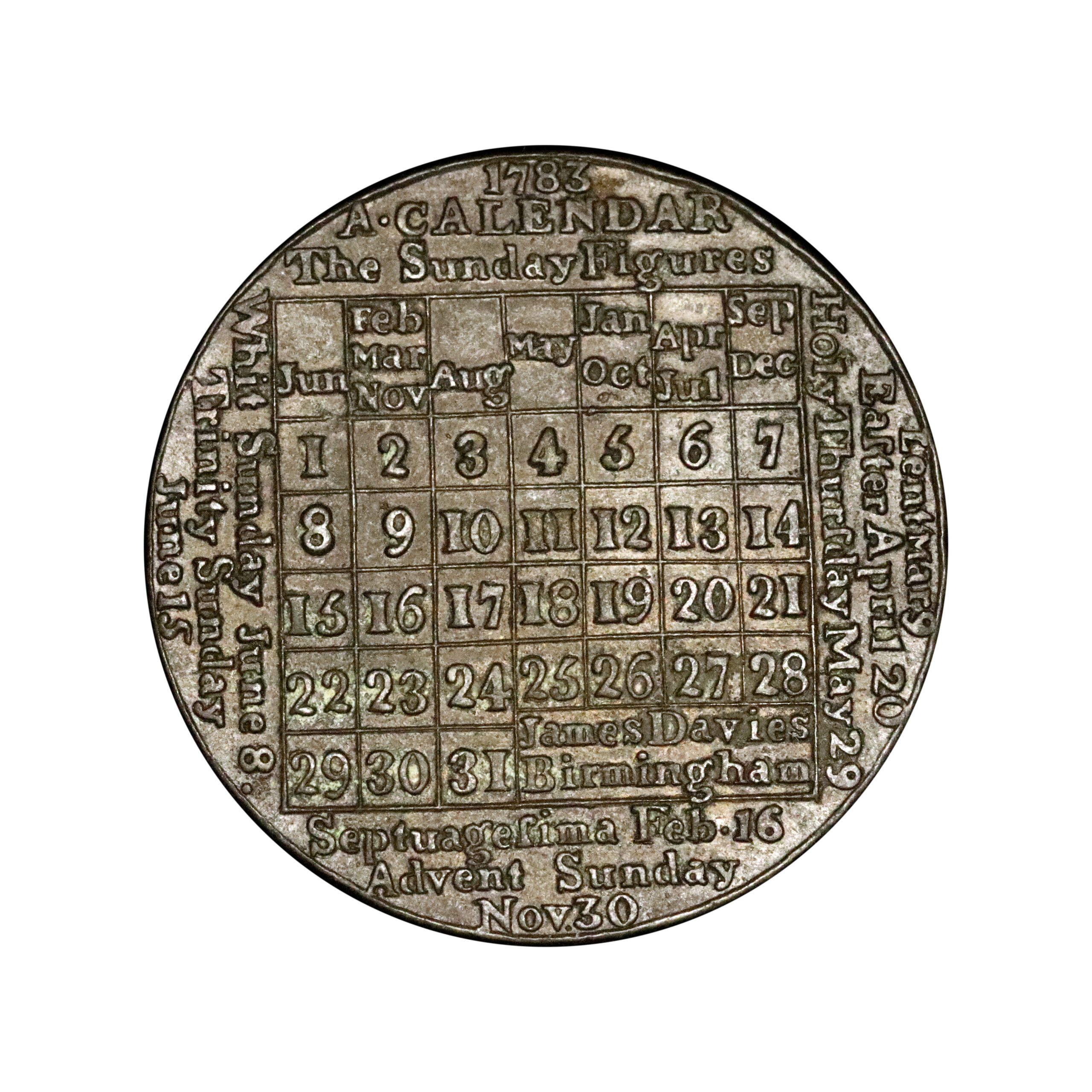 LOT 524 Birmingham, 1795, Davies Brass Calendar Medal