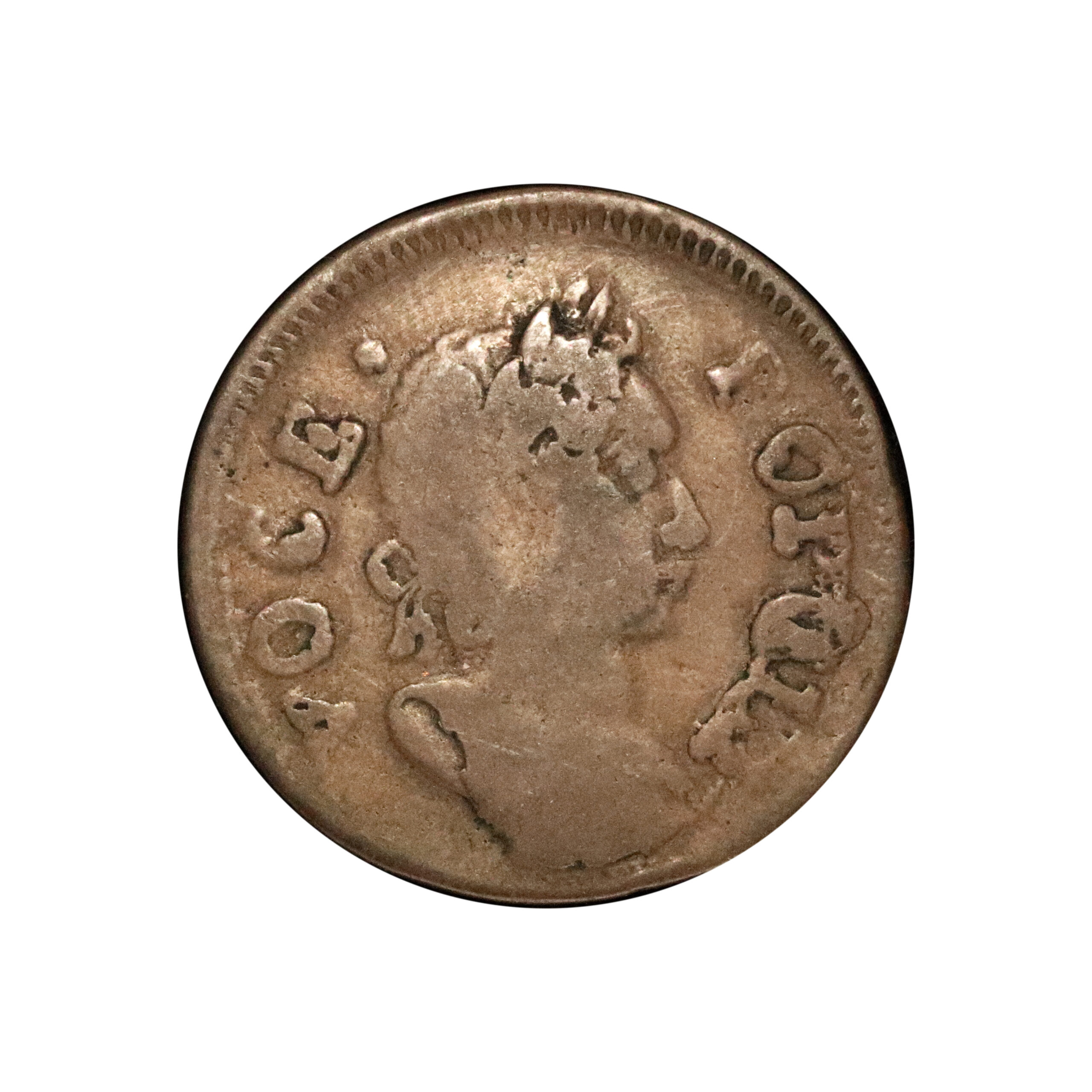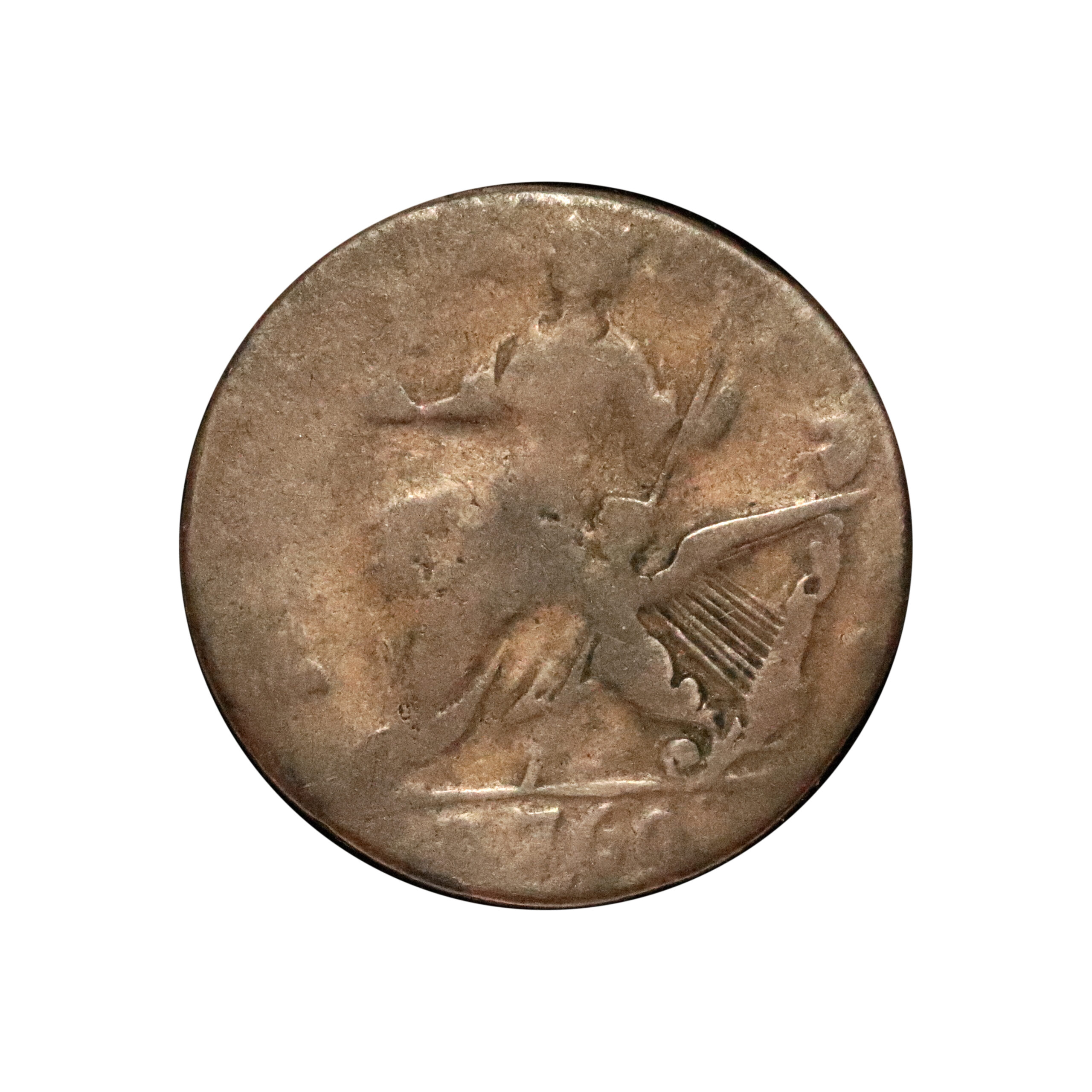 1760 Voce Populi, US/Ireland; copper, Nelson-4 / Zelinka 2-A, 27mm, 5.27gm. Extremely crude, very late die state and light. Excellent fabric, very good/poor, but probably very fine or better for issue.