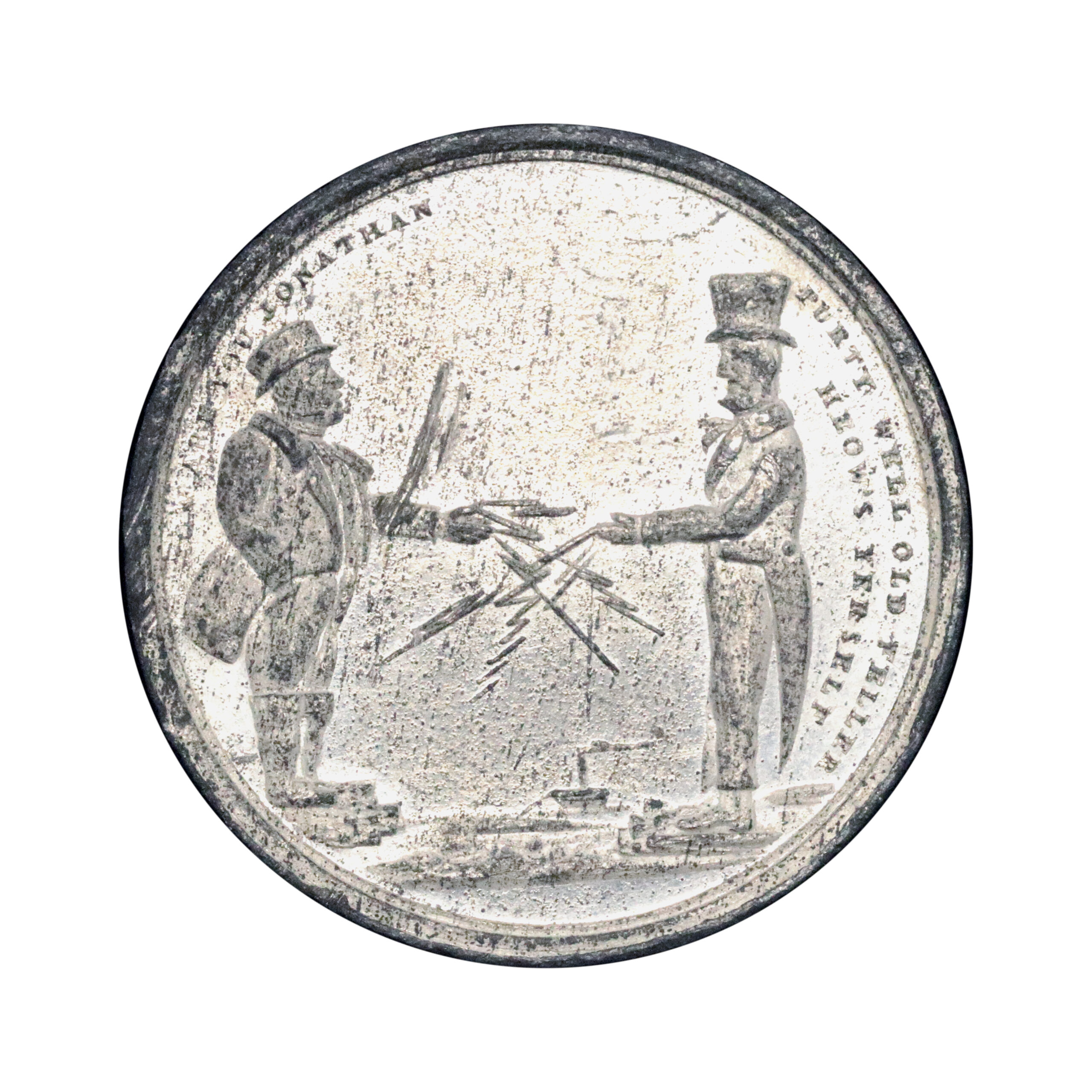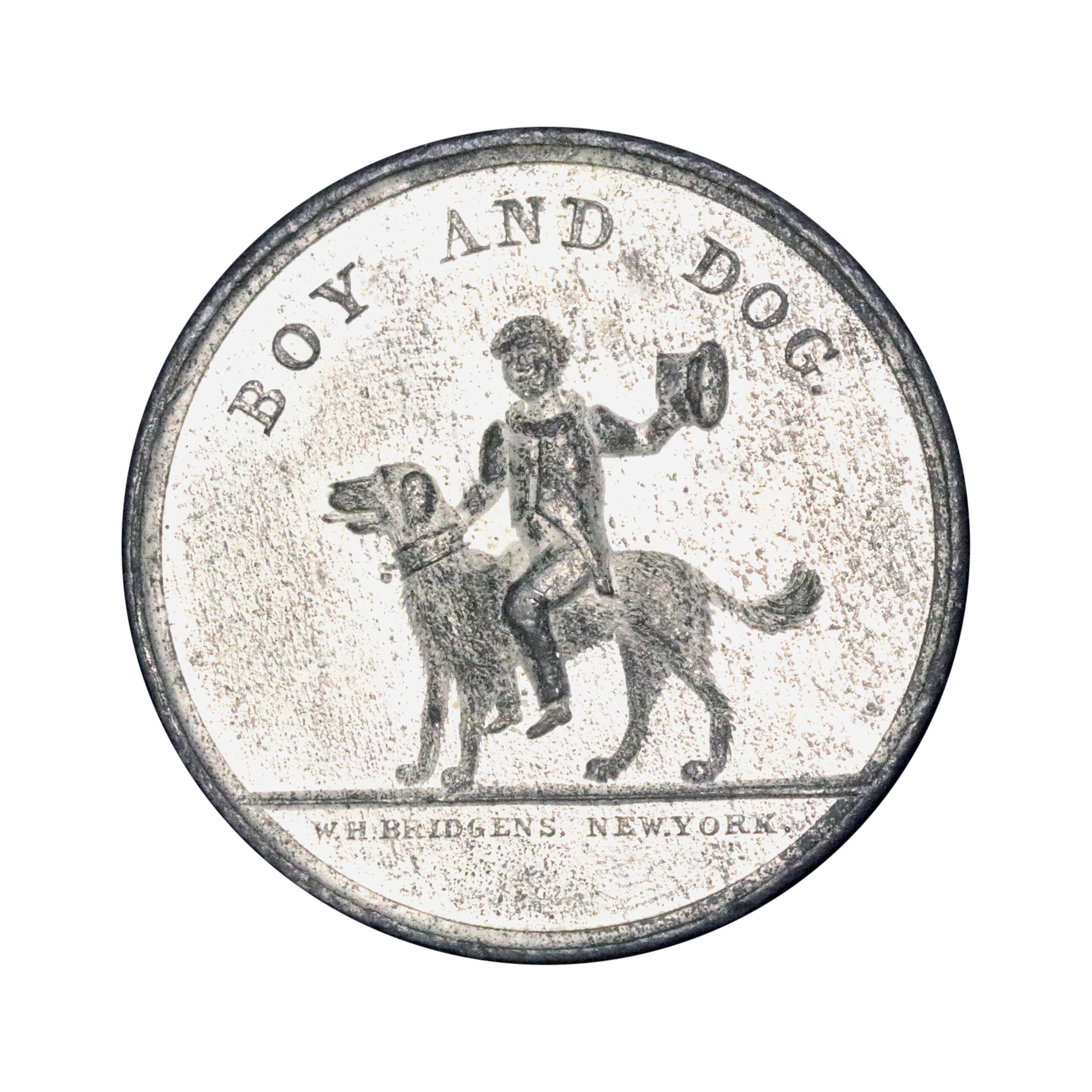 George H. Lovett, Medallist (c.1858); New York City, NY, white metal, 31mm, with plain edge. W. H. Bridgens New York, Boy And Dog / electrical discharge, etc. Parts of the surfaces dulled with remainder showing original brilliance. Extremely fine or better for issue.