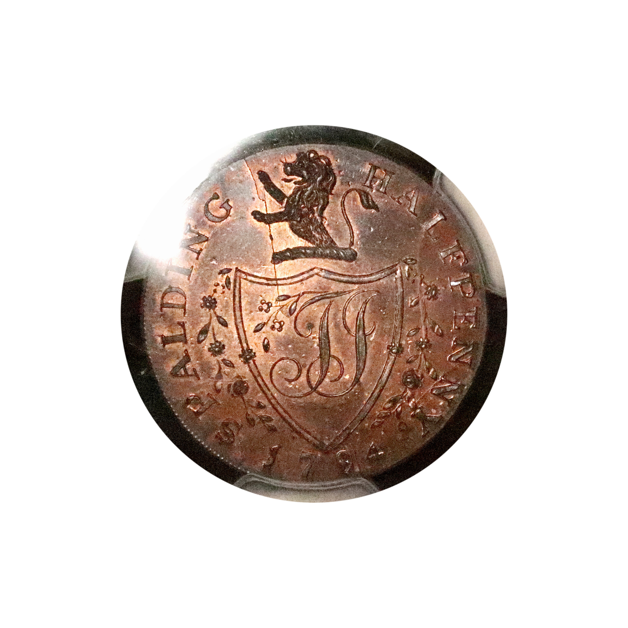 LOT 72 Lincolnshire Spalding Copper Halfpenny DH6a, MS 66 RB