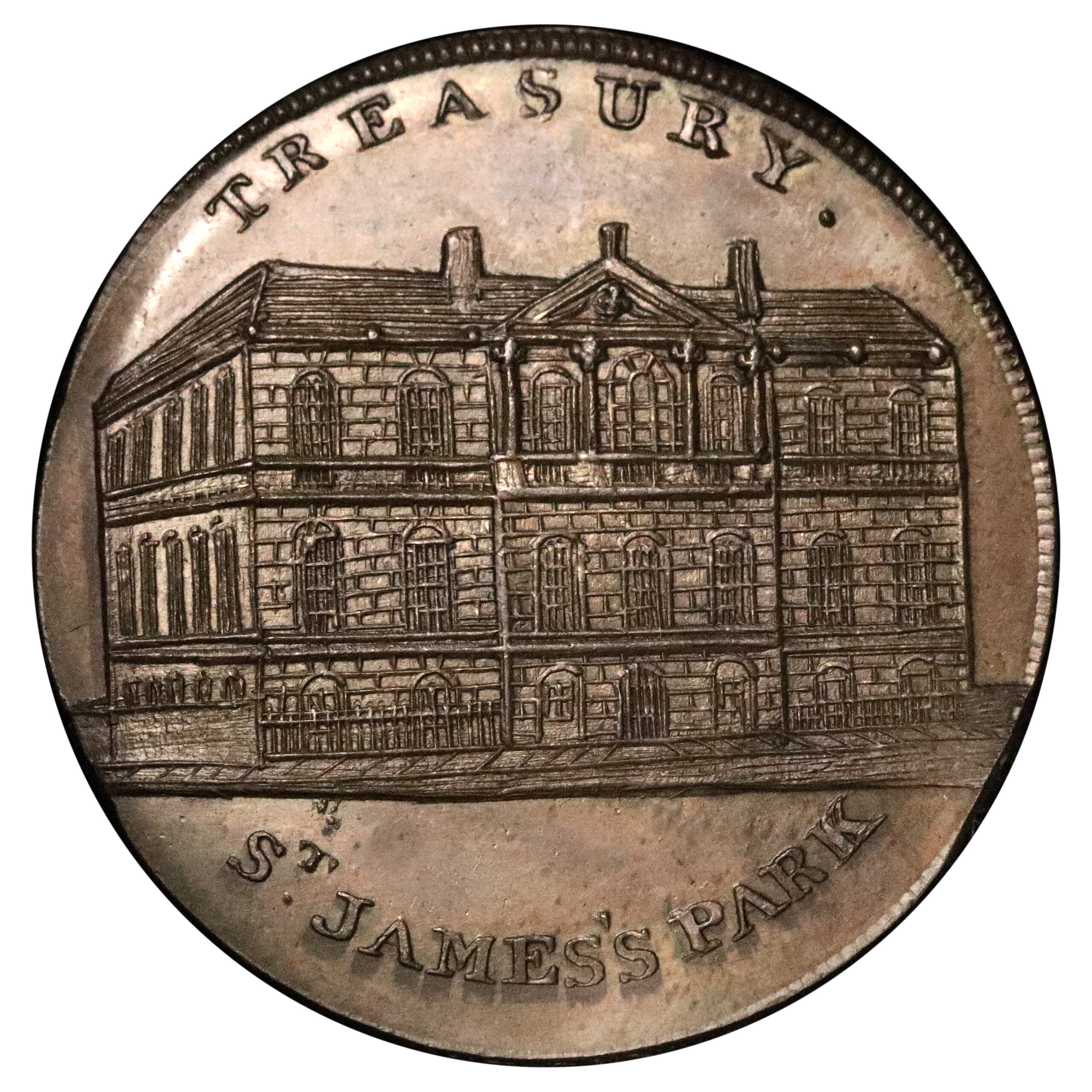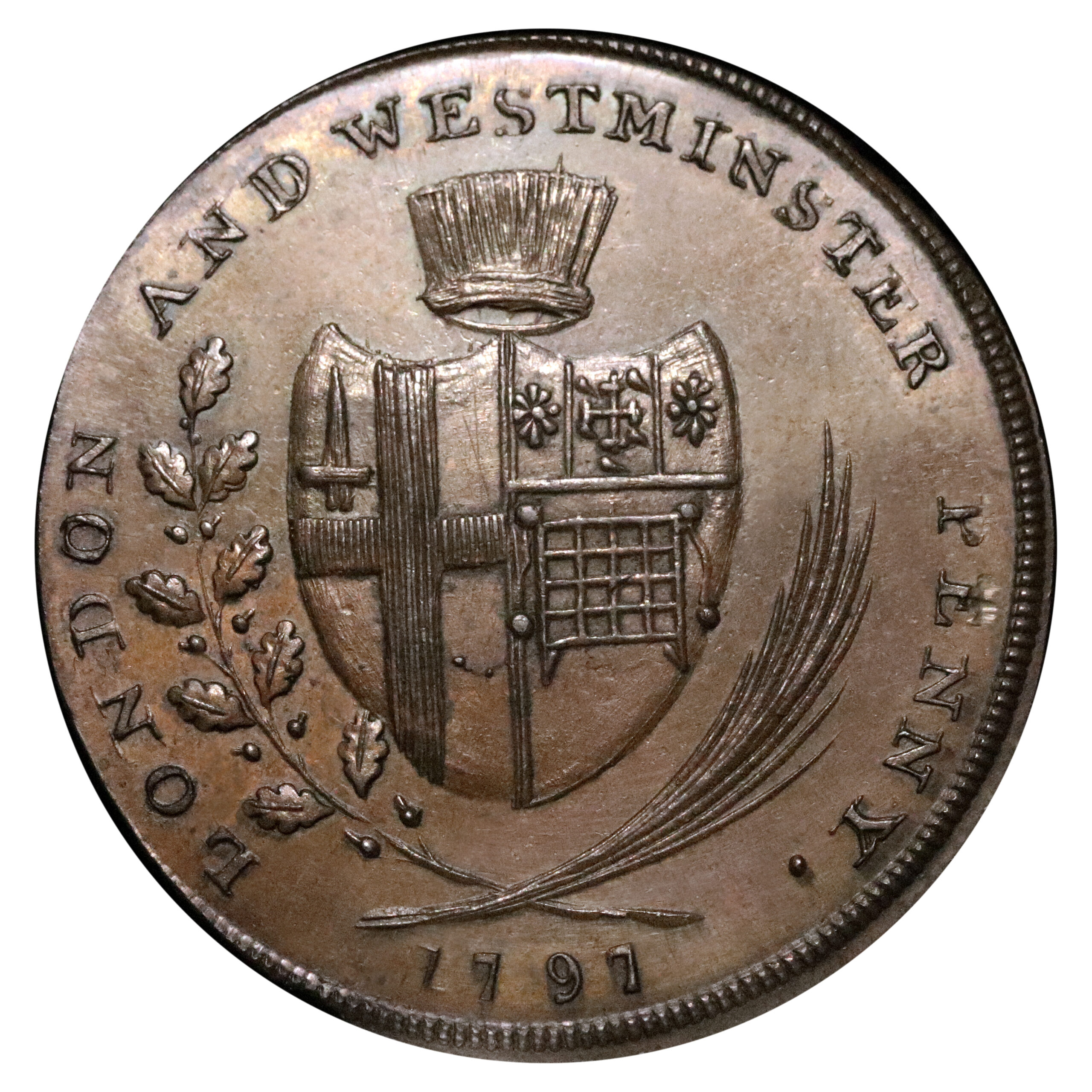 London, The Treasury; D&H 88, Prattent’s London & Westminster Series copper penny, 23.93g. Well struck with shimmering tan surfaces and splashes of original colour, rareExtremely fine or better.